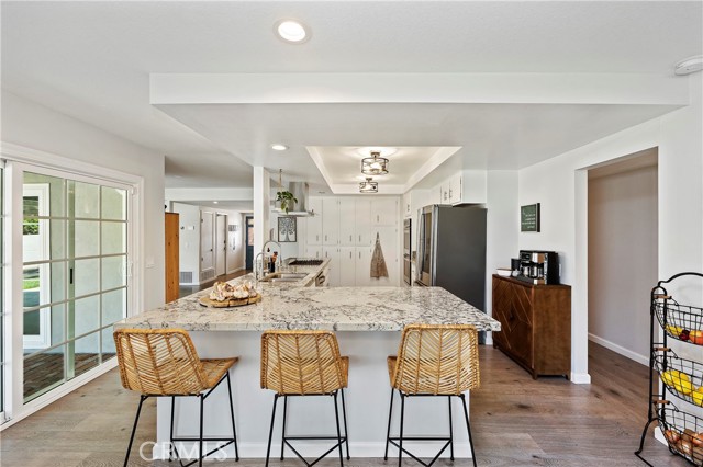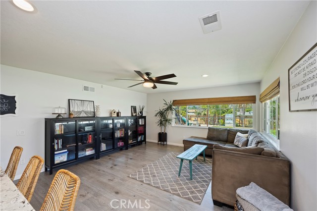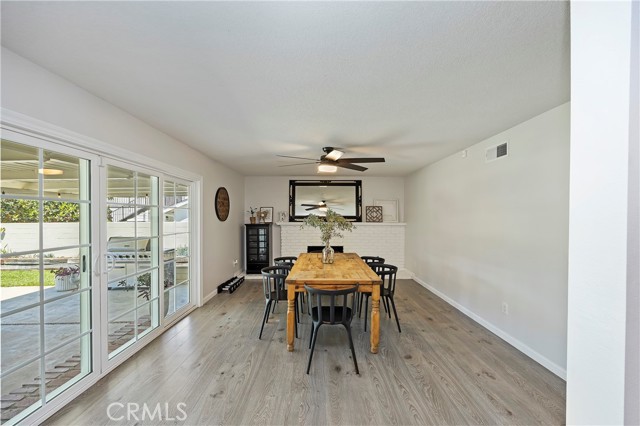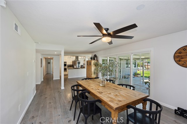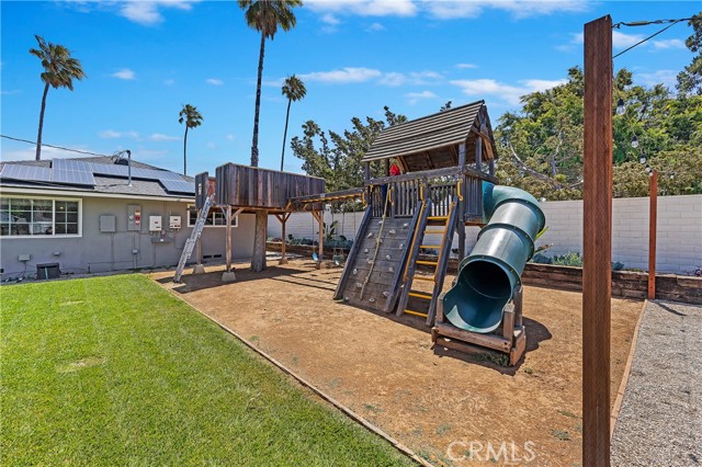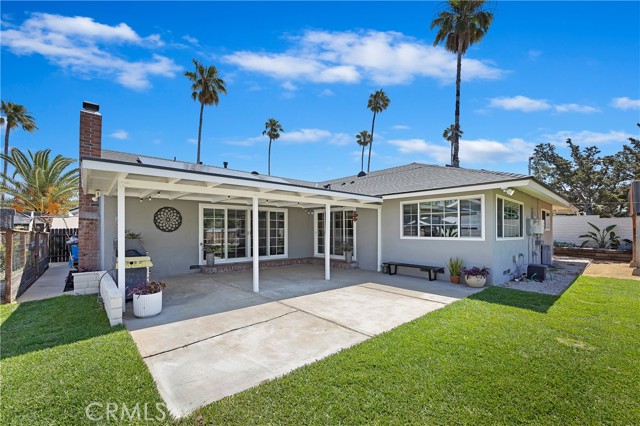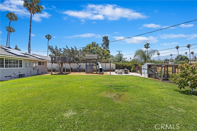 Welcome to this exquisite Ranch Style home that truly embodies comfort and style. As you step through the grand double doors of this remodeled home, you'll immediately appreciate the seamless flow of the open floor plan and the abundance of natural light, entering through the newer dual pane windows and newer French door sliders. The kitchen boasts newer stainless-steel appliances and professional style vent, contrasting against the pristine white kitchen cabinets and white marbled granite countertops. The breakfast bar is a versatile space where you can enjoy informal meals and connect with family and friends while preparing food. Custom Led lighting throughout adds an inviting ambiance for cooking and entertaining. Step into the charming dining room where the focal point is a striking white brick fireplace with timeless appeal that adds a touch of character and warmth to the dining experience. Experience the inviting living room and seamless connection to the kitchen. Discover the serene retreat of the main bedroom with a luxurious en-suite bathroom. All the bedrooms offer welcoming living spaces. The interior of this home has been meticulously upgraded with several energy-efficient features, including whole house fan, newer tankless water heater, newer energy-efficient heating and AC ducting and newer energy efficient attic insulation. Newer roof has PAID for Solar panels. Main electrical panel has also been upgraded w/newer breakers. Be prepared to be captivated by panoramic views of the highly manicured outdoor space. Exterior of home has newer paint and drought-tolerant landscaping. Explore the backyard & you'll discover a haven for gardening enthusiast, complete with multiple active gardens. Large manicured lawn for games or entertaining with auto sprinklers that ensures easy maintenance. Children's play area is equipped including custom tree house for hours of playtime. Adding to the appeal are the many stone fruit trees in the tree garden, offering a delightful harvest for a green thumb. Custom chicken coup housing egg producing chickens and custom clean watering/food station. Enjoy the dedicated serene seating area for sunset relaxation. Side yard has a spacious dog-run. Additional features are a whole house water softener, outdoor garage has "dusk to dawn" lighting. Ring doorbell, Ring motion-sensor cameras, Ring security on windows/exterior doors. Nest smart thermostat. Walking distance to award-winning schools and shopping.
