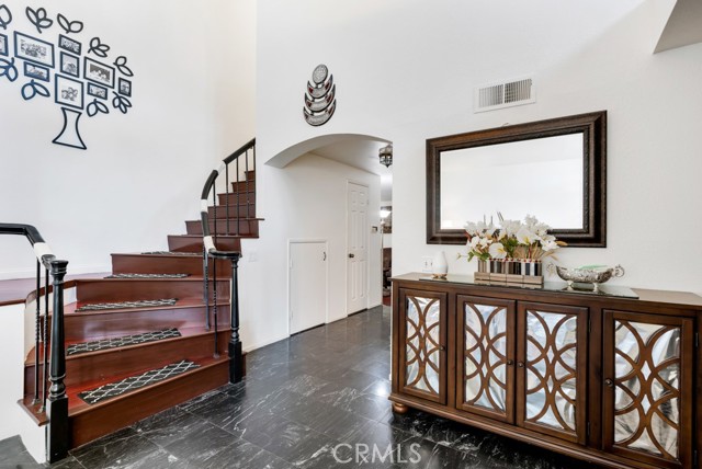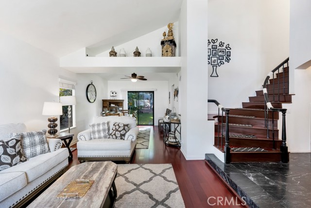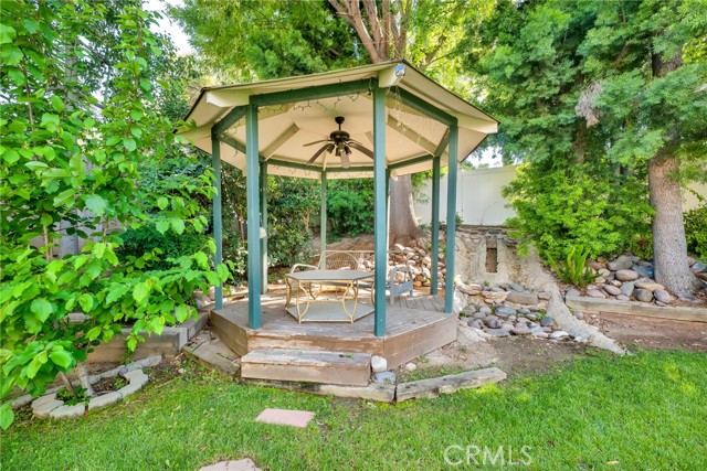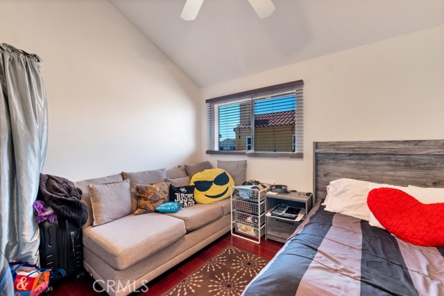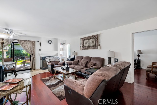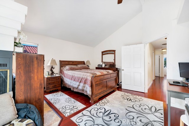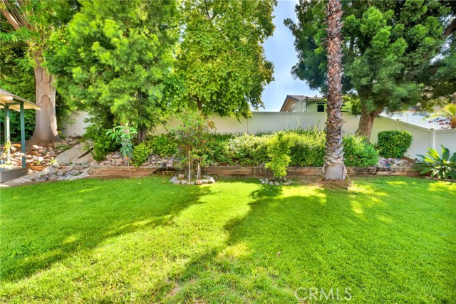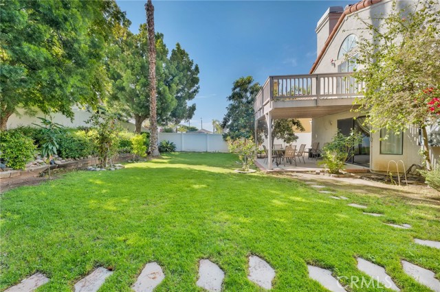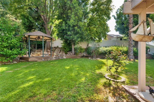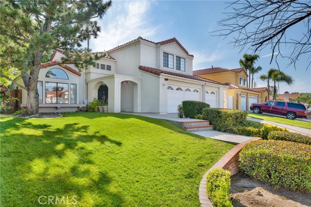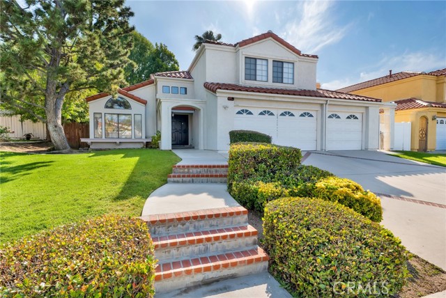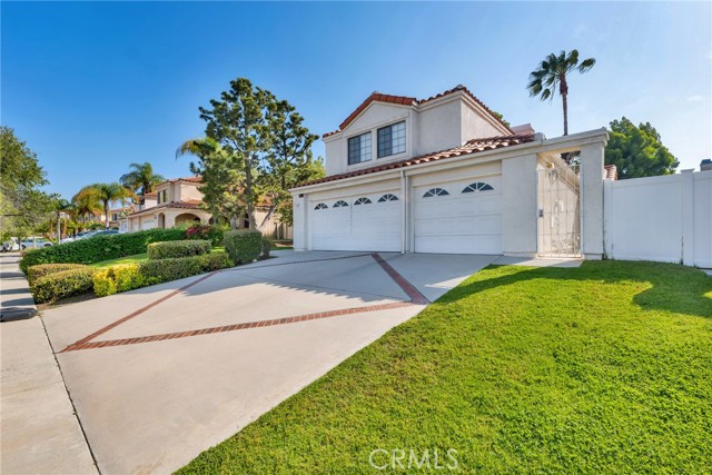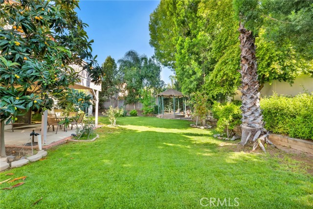 Prime South Corona Location has it all Cul-de-sac Street that is in the most desirable of areas with NO HOA. Built in the 90's with awesome curb appeal and the right floor plan, approximately 2,500 sq ft on 2 stories, Spanish clay roof with vaulted ceiling, featuring 5 bedrooms 2.5 bathrooms (1 bedroom downstairs with its own side direct access) Upstairs a true Primary Suite With French Doors To Walk-out Balcony & a large en-suite bathroom with his and hers, roman tub and a shower, a Fireplace Retreat with large walk in closets. All bedrooms and living spaces have beautiful cherry flooring. Recently remodeled gourmet kitchen is well-appointed with recessed lighting, gorgeous granite counters, designer backsplash, high end tile floors and solid wood cabinets. A good-sized pantry room also comes in handy. A formal Dinning room with a slider to back yard for entertainment. A formal living room for additional seating, and a large bright family room. Double French entry door with a foyer overlooking the circular staircase. The first floor bedroom with its own entry door offers rental or office/work possibilities, or comfortable quarters for guests and privacy seeking residents. A separate laundry room comes with a built-in shelf and a storage closet. There are 3 additional good-sized upstairs secondary bedrooms and a full hallway bathroom with double sinks. TWO fireplaces: one in the family room, another one in the Primary bedroom! A huge Private Secluded Lot full of fruit trees, singing birds, Gazebo, super relaxing on .20 acre cul de sac lot super private with lots of greenery and enough room for a pool. The 3 car garage is deep with a large driveway, Pride of ownership, newer paint and newer appliances are just a few more wonderful things this home has to offer. This home truly has it all! Near Santa Ana Regional parks, great schools, shopping, dining & entertainment in the best area of Corona, close to malls, shops and places of worship. This home qualifies for Community property loan which gives discounted mortgage rates regardless of income. Inquire for more info. This home is move-in ready!