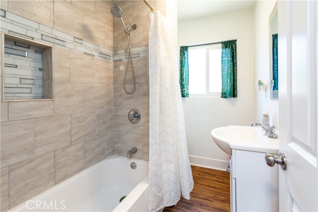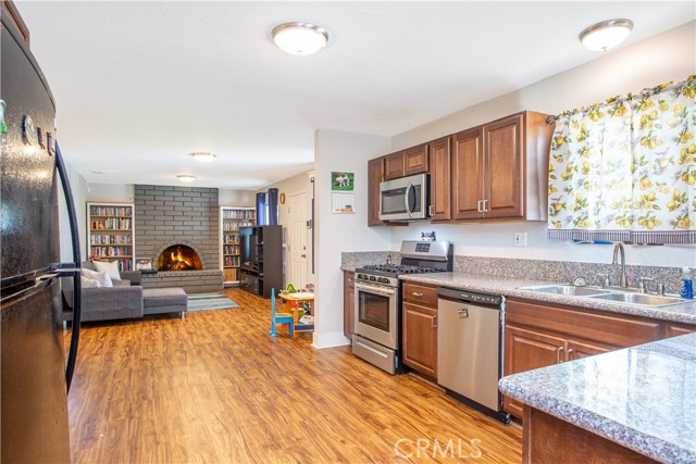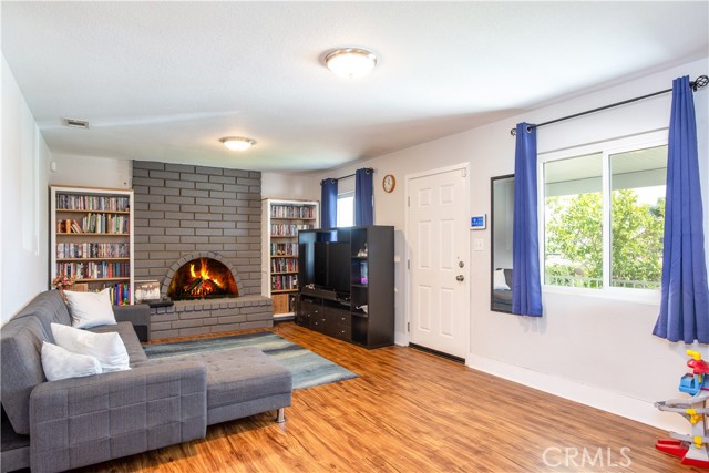 Great home in the beautiful city of Corona! This updated 2 bed, 1 full bath home shows pride of ownership and offers great opportunity in a convenient location being close to the 91 and 15 freeways as well as many other shopping options. The driveway is long with plenty of room for parking multiple cars with RV access or trailer parking/access. The large deck and covered patio off the front of the home are great for entertaining and enjoying the distant mountain views.This home has an open concept floor plan with 2 bedrooms and 1 bathroom. The kitchen is bright and open with lots of storage and counter space. Kitchen features newer cabinets, pantry, newer stainless steel appliances (dishwasher, stove, microwave, garbage disposal, sink) and granite counter tops. The living room is large with lots of light and charming brick fireplace with rounded hearth opening. Additional features of the home include LED lighting throughout, newer water heater, central A/C & heating, fresh interior/exterior two-tone paint, dual pane windows, interior/exterior doors, closet doors, newer hardware, lighting, fixtures, baseboard, carpet and newer wood laminate flooring. The bathroom has a newer toilet, sink, fixtures and a beautiful ceramic tile shower/tub enclosure. The home features an indoor laundry room. There are two large sheds in the back yard for additional storage.