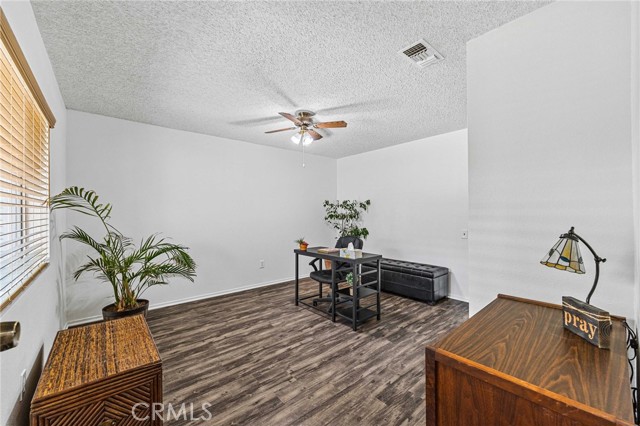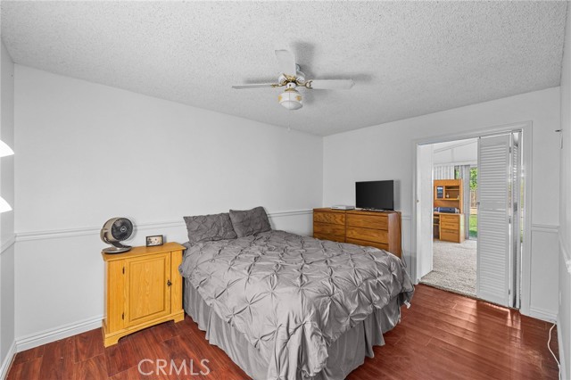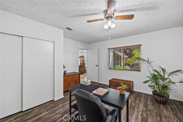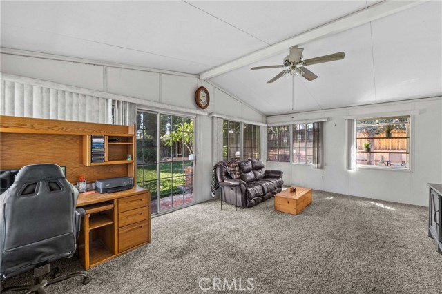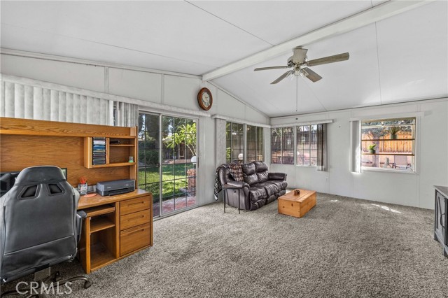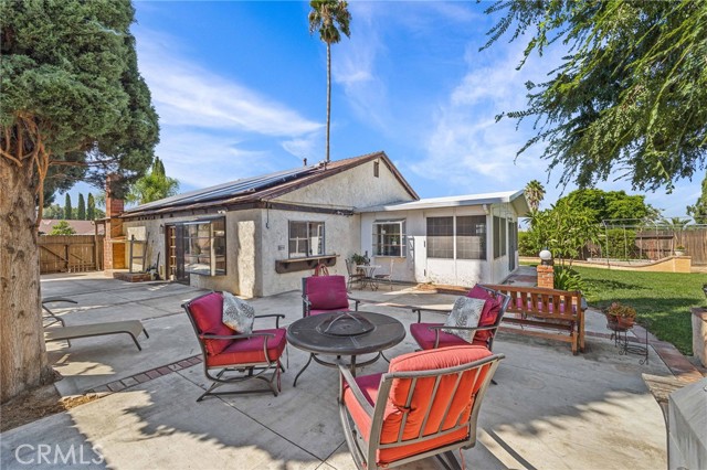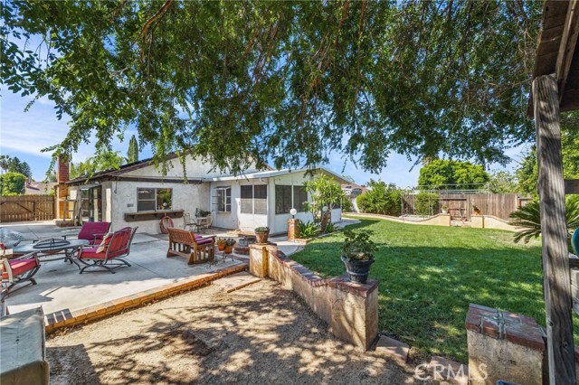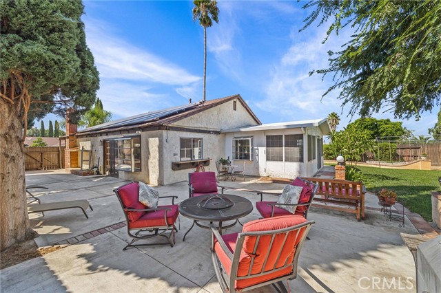 Welcome to a first time buyer's dream home! This SINGLE-STORY Corona gem is located in a very quiet neighborhood, yet close to schools, parks, and shopping. Low maintenance front yard hardscaping with palm trees, plumeria trees, LARGE DRIVEWAY FOR MULTIPLE CARS AND RV PARKING, and SOLAR PANELS. Original owner had a portion of garage converted into an additional front bedroom, making this a desirable 4-BEDROOM! Freshly painted full INTERIOR paint, and EXTERIOR TRIM PAINTING gives new owner a fresh, blank canvas. Upon entering, you'll see an open and bright front room with an impressive floor to ceiling STONE FIREPLACE. Adjacent to the family room is a spacious dining area, and kitchen for easy family gatherings and visiting. There is also an ADDITIONAL MANUFACTURED BONUS ROOM with brand new carpet, on the back of the house, providing additional square footage and potential 5th bedroom. Ceiling fans throughout. Lots of room on this large, usable lot that has backyard landscaping with FRUIT trees, plumeria trees, space for a garden, sizeable shed with electricity and A/C which could be your very own SHE SHED! There is even a grass area for Fido. Plenty of room for a patio cover, and pool if that's your wish. Easy access to 91 and 15 Freeways. No HOA and low taxes! Great family home, just needing your own finishing touches to make it your own. Come and envision your new beginnings today!