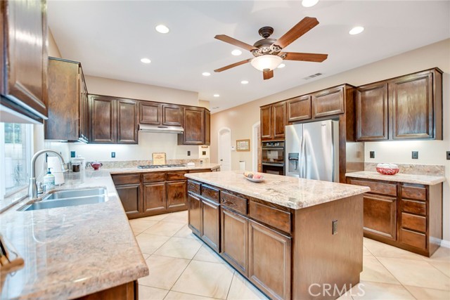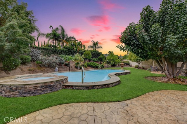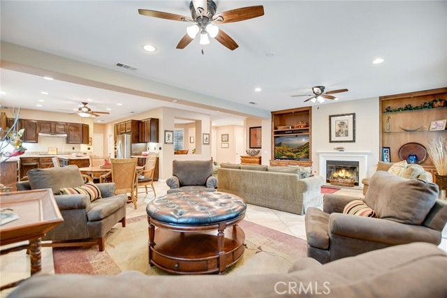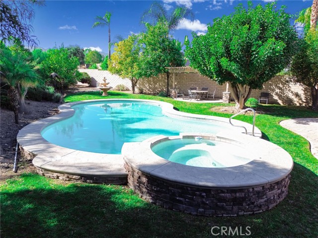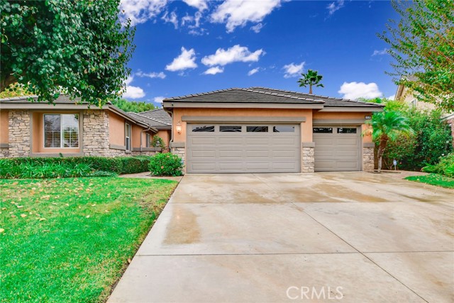WELCOME HOME! YOUR GORGEOUS MOVE-IN READY HOME is nestled in the highly desirable Fieldstone Collection II gated community of Corona. Your home features 4 large bedrooms and 3 full bathrooms. Meticulously maintained with many upgrades throughout, this home boasts true pride of ownership. Walk through the front door into your large formal living room that is open to your kitchen, dining room and great room. Your spacious kitchen has stone countertops, an extra-large center island, upgraded appliances, a walk-in pantry and loads of cabinetry for all your storage needs, as well as a garden view. Step into your great room which boasts an abundance of natural light, a cozy fireplace that is perfect for relaxing with family and friends and large French doors that open to an inviting and private backyard retreat with a sparkling pool and spa and a lush lawn. Enjoy your beautiful primary bedroom with two large walk-in closets; this wonderful space overlooks your backyard and offers a spacious bathroom with a soaking tub, a separate walk-in shower, dual sinks and a private toilet. Outdoor living is exceptional, relax and enjoy the many patio options, lush garden landscape as well as a fully fenced private and serene garden setting, perfect for entertaining! Property features: tile and laminate flooring throughout, a large laundry room, recessed lighting, a three car garage, plus lots more. This home is perfect for California lifestyles and entertaining! One of the bedrooms is currently being used as a library/office with the wall opened, this wall can easily be added back; this room features a walk-in closet and a window. This home is truly a must see!