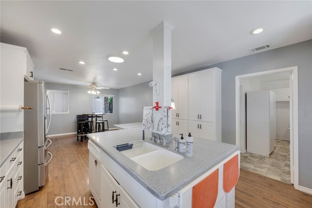 Back on the Market through no fault of seller, buyer backed out. Charming Single Story Corona Home in a Desirable Neighborhood. This home features comfort, functionality and an ideal living environment. A spacious layout with 1,626 square feet, 4 bedrooms, 2 bathrooms creating a cozy and convenient living space. As you enter this home you are greeted by an inviting living room featuring abundant natural light, wood burning fireplace & French Patio Doors creating a warm and welcoming atmosphere. Natural hardwood flooring in the kitchen and dining room area, extra large kitchen with Corian counters and lots of extra cabinets, kitchen painted in July 2023, carpet in living area, hall and bedrooms installed in 2021, hall bath updated in 2022/2023, roof was put on in 2006 and the house was replumbed with Copper Piping. Peaceful backyard with covered patio, raised bed planters, several trees that provide lots of shade and a newer block wall on the north side of the yard. Attached two car garage with built in cabinets for extra storage, side yard with shed and possible RV parking for a trailer or jet skies. You won't want to miss this one! In the heart of Corona. Close to freeway, shopping, schools and entertainment. MOVE IN READY, MOTIVATED SELLER!