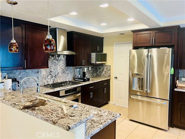 The beautiful upgraded turnkey home is in the highly desirable Sierra Del Oro community. Only one exit from East Yorba Linda, Orange County, freeway close, near shopping and schools, this home is all about location. Perfect for the family wanting something special and move-in ready. Wonderful new landscaping and sensational curb appeal are just the beginning. Spacious entryway and family room spill into the formal dining room, highlighting the dramatic staircase past the cozy great room with fireplace and into the kitchen which features granite countertops, teak cabinets, stainless steel accents, and stainless-steel appliances. The granite and custom touches continue upstairs into the hallways and all the restrooms. Beautiful, laminated floors and custom tile throughout. The beautiful sunken tub and standup shower reflect spa-like living and natural lighting completes the picture. Outside features a newly painted exterior with a clean and low maintenance backyard with beautiful unobstructed mountain and city light views.
