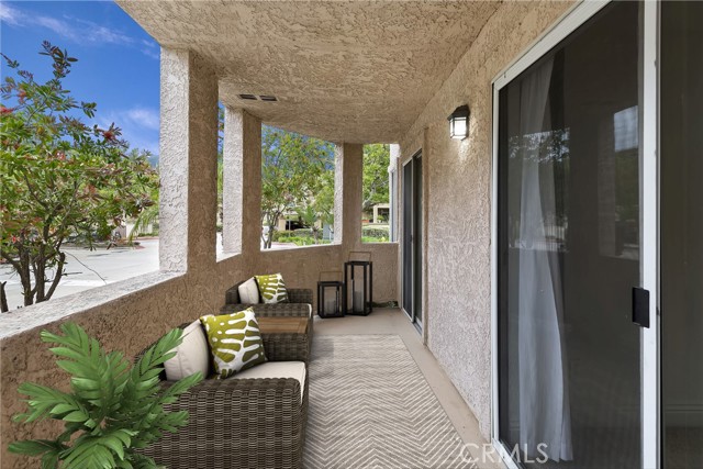 Beautiful 2 bed, 2 bath condo in the Sage Canyon Community of Sierra Del Oro! This spacious condo is on the ground floor and is a corner unit, great for privacy and a little extra quiet! Stepping into the home, you will be greeted by an open concept great room, perfect to arrange your space to suit your needs. The kitchen features granite countertops, plenty of storage, and attached in the pantry/closet you will find the washer and dryer. Each bed and bath sit at opposite sides of the unit, both well appointed, large, and featuring walk-in closets. The covered patio is a tranquil space to enjoy the view of the hills, and is accessible from both the living area and one of the bedrooms, with an additional storage closet on the patio. This complex offers a clubhouse, pool, spa, volleyball and basketball courts, and picnic area, and is located walking distance to shopping, dining, the Skyline Trail, and is perfect for you Orange County commuters as this is right off the Green River exit! Come see if this is your new home!