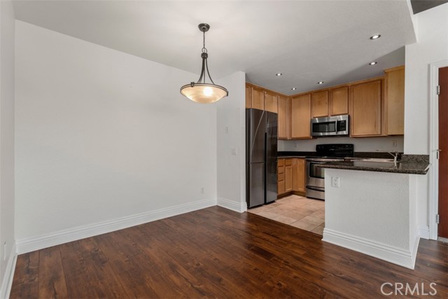 Experience luxurious living at its finest in this stunning top-floor condo that is truly one-of-a-kind. FHA APPROVED. This is very rare unit, this condo offers the ultimate in privacy and exclusivity, making it a highly sought-after place to call home. Very nicely updated 1 bedroom and 1 bathroom condo on the third level with spectacular views of the rolling hills and mountains. The Sage Canyon Condo Community is within Sierra Del Oro area of Corona. It's located next to Orange county off the Green River Road exit. With its stunning views and abundance of natural light, and high vaulted ceilings. This condo feels open and spacious, creating a sense of tranquility and relaxation. The living area is perfect for entertaining or simply unwinding after a long day, while the well-appointed kitchen offers everything you need to prepare delicious meals and entertain guests. The kitchen has granite counters, stainless steel electric range/oven, microwave, dishwasher and refrigerator. The spacious patio/balcony has a storage closet and plenty of room for BBQ grill and seating. The patio can be access from living room and the bedroom's sliding glass doors. The bedrooms is specious and bright with natural sunlight, with brand new carpet and very specious walk in closet. The laundry closet with washer/dryer combo is located in the hallway closet right next to the bathroom. In addition to its stunning interior, this condo offers access to a beautiful pool area that is perfect for relaxing and soaking up the sun. Homeowners association offers 2 spas, BBQ area, tot-lot, basketball court , exercise room. HOA fees cover water and trash service. Just a few short miles from Orange County with easy access to the 91 and 71 freeways, the 241 toll road and the Metro Station. Must see to appreciate this jewel. There is one carport for this property