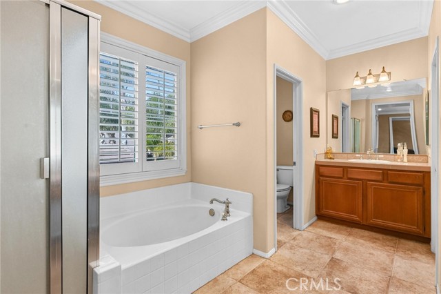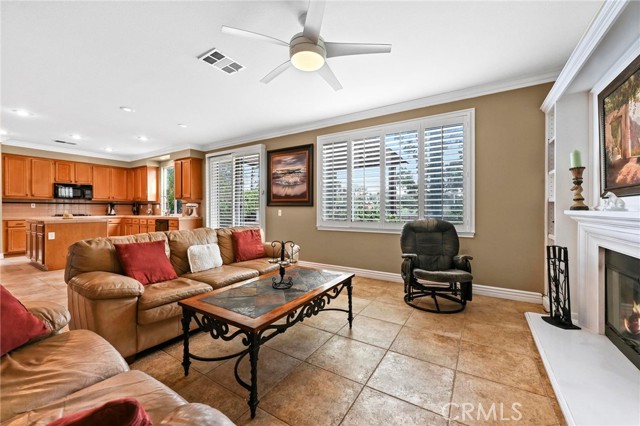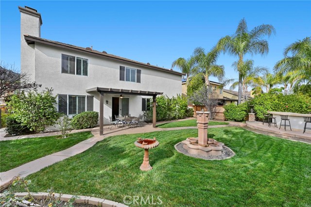 Absolutely beautiful home with PAID SOLAR PANELS! Step into a luxury that fits your lifestyle and make coming home the highlight of your day. This spacious 4 bed, 3 bath will welcome you with understated elegance from the postcard-perfect curb appeal to intelligent design elements that make daily living a pleasure. You and your guests will appreciate the spacious concrete driveway providing plenty of parking. A 3-car garage is perfect for all your storage and personal parking needs. Greet visitors on the covered patio with its attractive support beams and stone accents that seamlessly blend a touch of nature into the design of your home. The grand living room welcomes you with its tile flooring, plantation shutters, built-in storage, fireplace, and crown molding. Prep work is simple in your roomy kitchen and the coffee nook and island areas will accommodate a selection of drinks and snacks with ease. The open design of the main entertainment areas of the home ensures that it is perfect for entertaining. Conversation flows easily throughout the kitchen and living rooms and guests will delight in coffee and conversation by the fireplace. Enjoy dinner or more formal meals in the spacious dining room. When outdoor living calls, step outside and be swept away by the backyard paradise. Your soul will sigh as you gaze upon the covered alumawood patio with a ceiling fan and lights, raised grilling area with a travertine bar, and a gorgeous fountain at the center. This ideal backyard is private and secure, with abundant greenery, stamped concrete, and glass panels in the fence to extend the height while preserving the stunning views. When your company departs to the beautiful quarters which have natural hardwood flooring and ceiling fans, they will enjoy the solitude of this pleasant community. This home is situated in an award-winning school district. Beautiful Dos Lagos shopping center is nearby, which includes Trader Joe's, shopping, and dining. Don’t miss this amazing opportunity to live in this Gorgeous Home!
