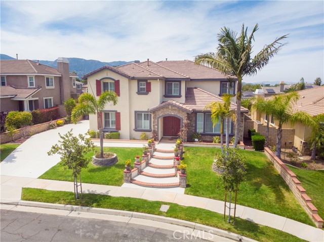 Nestled on a serene cul-de-sac in the heart of Corona, this stunning property offers a perfect blend of modern elegance and comfortable living, with breathtaking city lights and mountain views from upstairs. As you step inside, you'll be greeted by an inviting foyer that leads you into the spacious living area adorned with large windows that flood the home with natural light. The open-concept layout seamlessly connects the living room to the gourmet kitchen, making it ideal for entertaining guests or enjoying quality family time. The kitchen is a chef's delight, featuring sleek granite countertops, top-of-the-line stainless steel appliances, ample cabinet space, and a large walk-in pantry for all your storage needs. Whether you're hosting dinner parties or whipping up everyday meals, this kitchen is sure to inspire your culinary creativity. Adjacent to the kitchen is the elegant dining area. Step outside to the spacious yard, complete with covered patio and a shaded palapa, perfect for outdoor dining and entertaining. The backyard also offers a spacious bar/counter top, providing ample space for food preparation and serving guests. It's the perfect spot to enjoy the California sunshine or unwind under the stars. Back inside, retreat to the luxurious master suite, which offers a peaceful sanctuary to relax and recharge. The master bedroom features a cozy fireplace, a walk-in closet, and a spa-like ensuite bathroom with dual sinks, a soaking tub, and a separate shower. Upstairs, you'll find three additional bedrooms, each thoughtfully designed with comfort and style in mind. Enjoy waking up to stunning views of the city lights and mountains from the comfort of your own home. This sought-after property also includes a downstairs bedroom and full bathroom, providing convenience and versatility for guests or multigenerational living arrangements. Other highlights of this exceptional home include granite floors throughout the downstairs, plush carpet throughout the upstairs, recessed lighting, upgraded window shutters throughout, spacious laundry room and a two-car garage with direct access. Every door and window is hardwired for a security system. Conveniently located near shopping, dining, parks, and top-rated schools, 2376 Jean Marie Circle offers the perfect combination of luxury, comfort, and convenience. Don't miss your chance to make this your forever home - schedule a showing today!