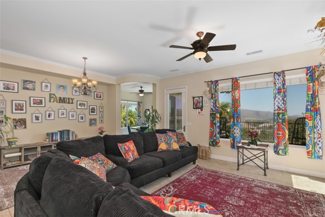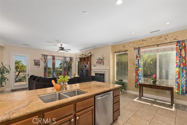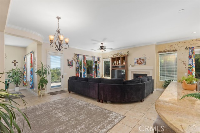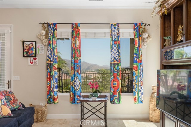 PICTURESQUE VIEWS SURROUND YOU IN THIS SOCAL'S PREMIER ACTIVE 55+ TRILOGY AT GLEN IVY GOLF COMMUNITY! This 1758 sqft. 2 BD/2B open floorplan home welcomes you to high ceilings, extra-large windows throughout, and a spacious great room with a cozy fireplace for those cold evenings. The fully fenced backyard features two concrete patios ensuring your enjoyment of panoramic tranquil mesmerizing views from sunrise to sunset to sunrise...view the sky meeting the mountains...view the stars meeting the mountain silhouettes. Extra-large windows throughout the home serve as frames for the view outside the world year-round. The Glen Ivy Golf Course runs throughout the Trilogy community. Green avocado orchards throughout the complex for your viewing enjoyments. Enjoy the many amenities and numerous club activities provided throughout the year including outdoor summer concerts at the Trilogy Amphitheater.