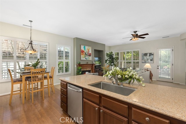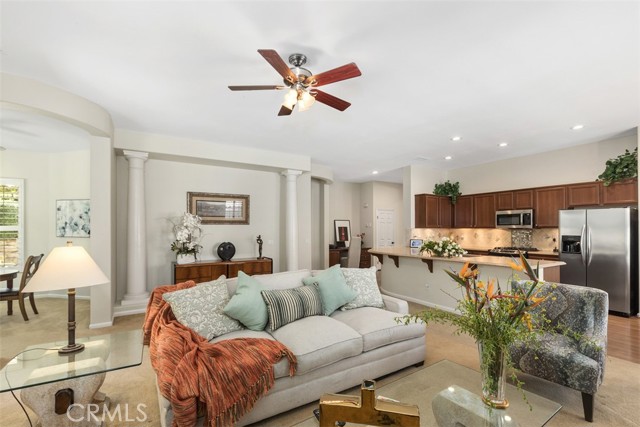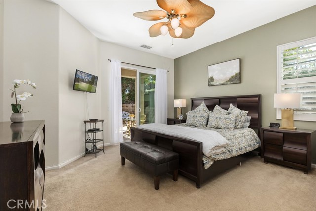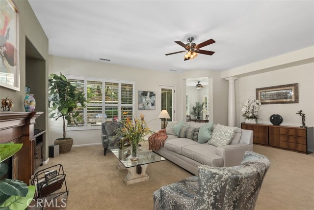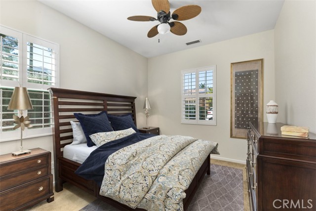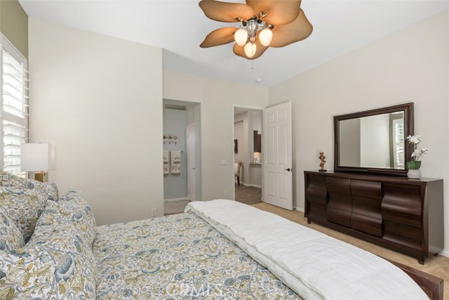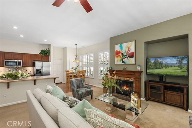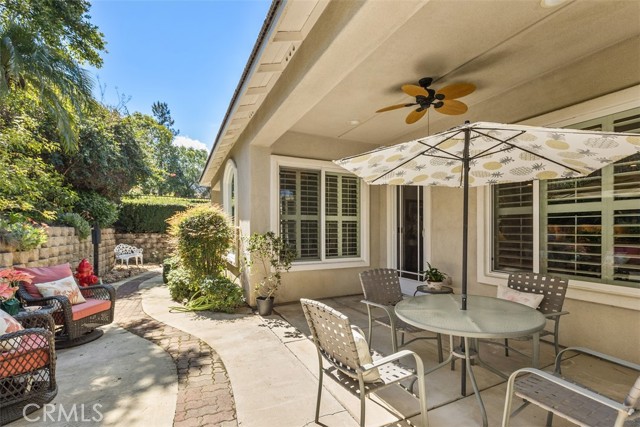 FANTASTIC two bedroom two bath Tenaja Model at Trilogy at Glen Ivy Resort.This is an end unit with only one neighbor gives you lots of privacy. The home has been recently painted and has a nice open floor plan. Beautiful Plantation Shutters throughout the home and a Private Dining Room to do all your entertaining . The Master and Guest bedrooms both have Custom Closet which makes organization a breeze. The home is also equipped with Brand New Whole House Fan to ease those warm Summer days. The HOA includes a fantastic gym and indoor and outdoor pool with a gorgeous Clubhouse.The Clubhouse has a walking track, tennis courts, pickle ball courts, bocce ball, and the Amazing Glen Ivy Golf Course. This Home is Ready for its new forever owners.