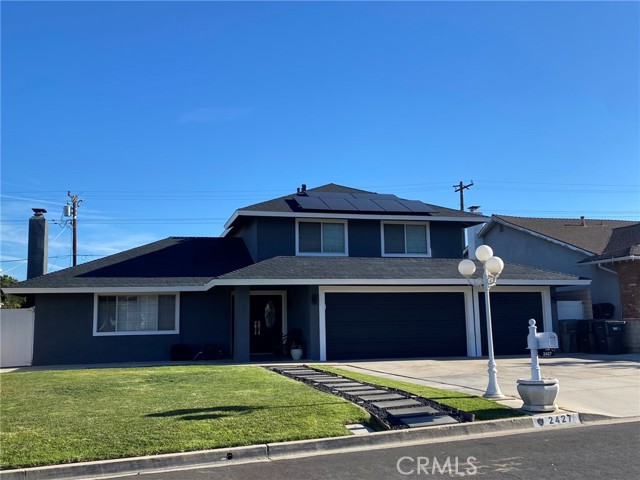 Beautiful single family Corona Pool Home with 4 bedrooms, 2 1/2 bathrooms, fireplace living room, huge family room with electric fireplace insert, and office. The home was remodeled with an open floor plan, downstairs luxury vinyl laminated floors and new upstairs carpet. Master suite bedroom on the main floor has large closet. Remodeled kitchen with quartz countertops and more. There are 3 bedrooms upstairs plus a custom mud room. Large backyard with covered patio to entertain has a beautiful pool/spa, cabana and bbq area. The property has a 3 car garage equipped with a Tesla charger and a solar panel system. This neighborhood has no HOA and low taxes. Close to Orange County and easy access to the 91 freeway, 91 express lanes, 241 toll lanes, and the 71 freeway.
