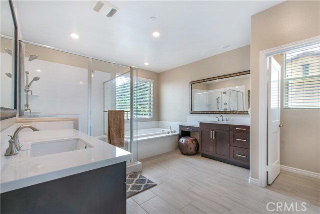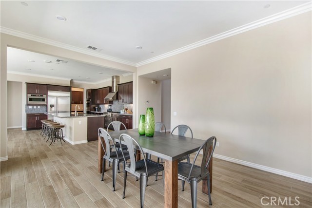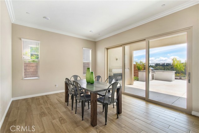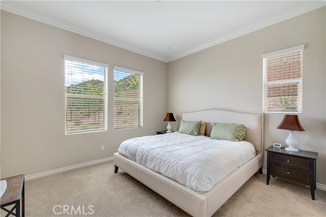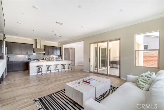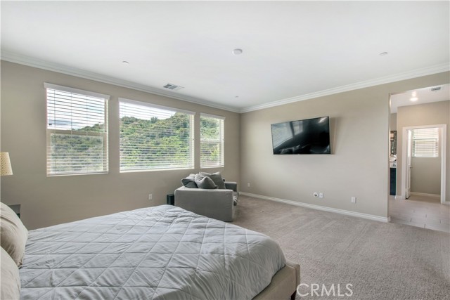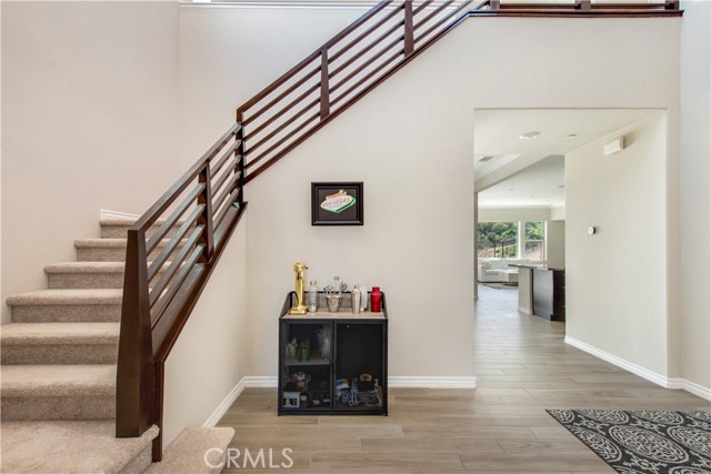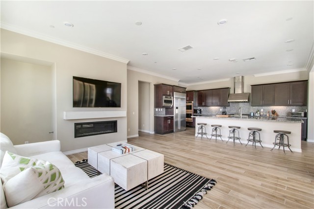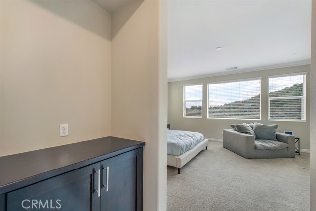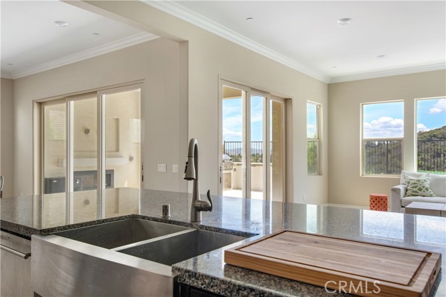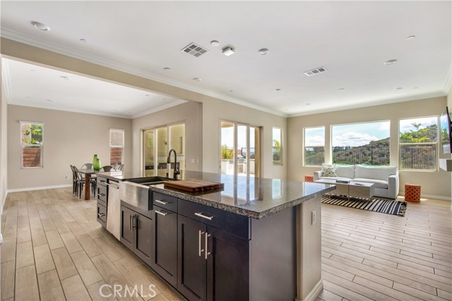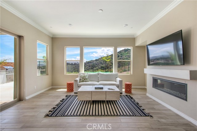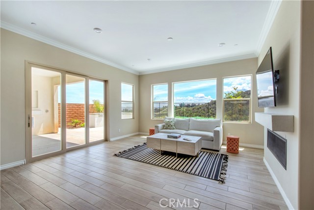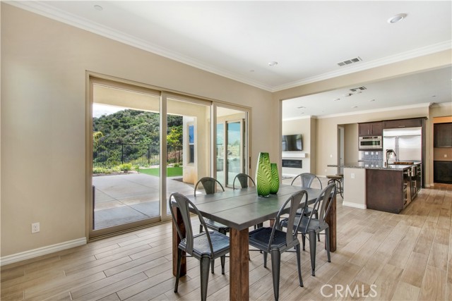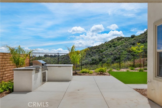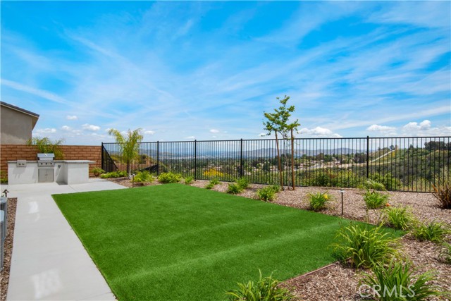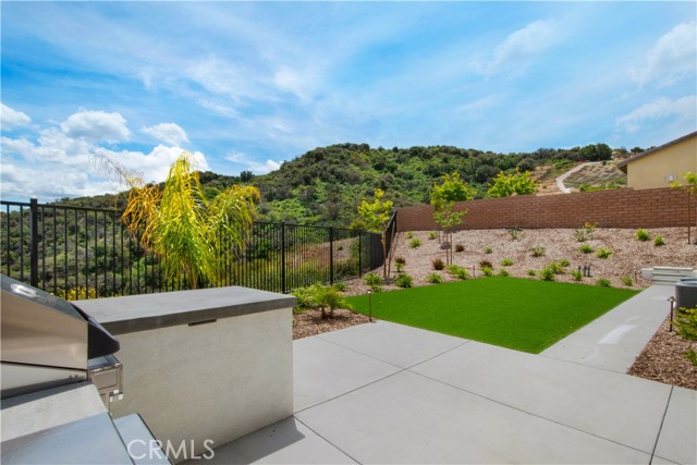 Fabulous view home with Open Concept floorplan – located in the desirable Gated Community of Sierra Bella. Features of the home include sliding glass doors off the dining and great room, that open the home to indoor-outdoor living, opening onto the California Room which features a fireplace on the patio and a space of an outdoor Television, and connects to an expansive yard with hillside and mountain views, and a built-in BBQ. Tall ceilings throughout with abundant natural light. A contemporary kitchen is built with the chef of the family in mind – features stainless steel appliances including double ovens and built-in refrigerator, stone countertops, a huge center island with seating, and an amazing walk-in pantry. Five Spacious bedrooms, including a luxury primary suite with a spa-like bathroom which has separate shower, a large soaking tub, and an extra-large walk-in closet – AND a bedroom with full bath on the main level. On the upper level – the spacious bonus room/loft creates a great space for a movie room, family room, or kid space – has access to a private terrace with forever views. Additional spaces in the home include an Office/Den on the main level at the front of the house, and a over-sized laundry room on the upper level with a sink and an abundance of storage space. Sierra Bella is gated community conveniently located just off Green River Road – with an easy OC commute. The homes in Sierra Bella are Wi-Fi Certified for whole-home connectivity.