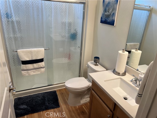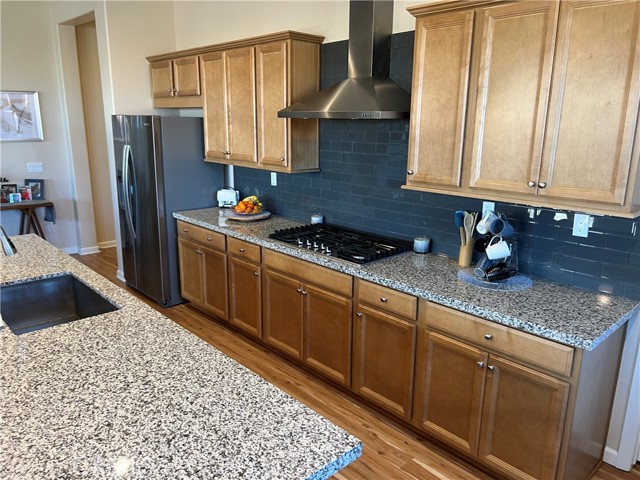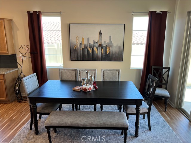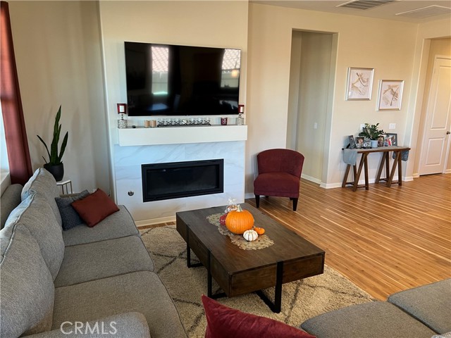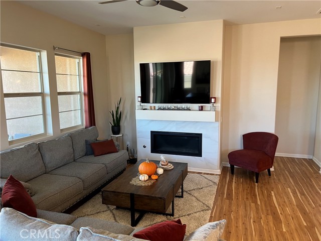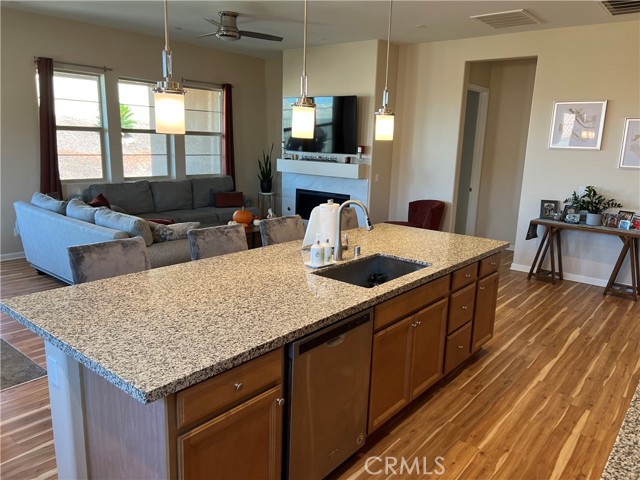 Welcome to the award-winning and highly desirable 55+ community of Terramor. This beautiful 2-bedroom, 2-bathroom + Den home has a spacious floorplan. The home has been updated with gorgeous wood flooring throughout and custom tile kitchen backsplash. The dream kitchen is complete with a huge island, walk-in pantry perfect for a large family or entertaining guests. Living area with a custom refaced gas fireplace. There is a spacious laundry room and adjacent Mud room to collect and organize. Natural floorplan flows from front to back. The backyard features a covered patio with a manicured lawn. Mountain views from both front and backyard. The home offers unique privacy as it backs to open space to enjoy spectacular sunsets and peaceful evenings. Low maintenance front yard. Includes leased solar. Home is prewired for surround sound. All of this along with the special amenities that Terramor living has to offer, which include 3 swimming pools, game room, craft rooms, sauna, firepit, outdoor area, bar, community garden, dog parks, sports courts, pickle ball, bocce ball, tennis courts, numerous clubs and 5 miles of walking trails. Close to the 15 freeway, shopping and restaurants. This is the One!