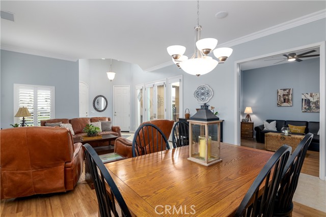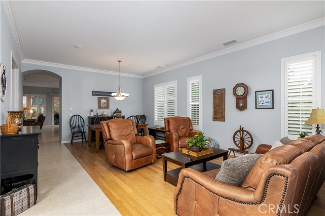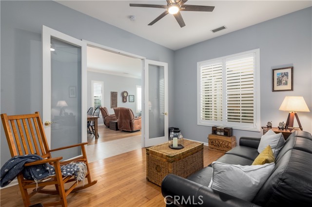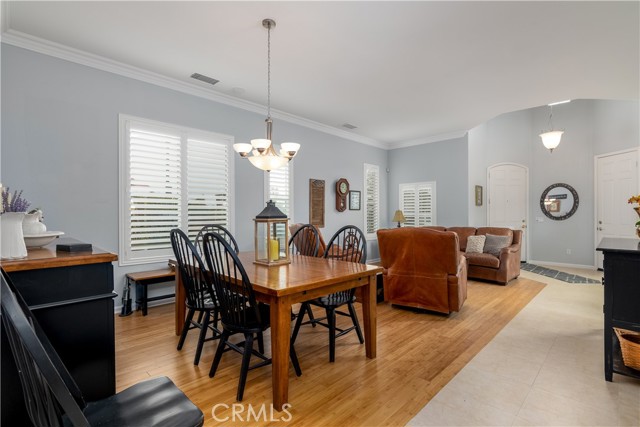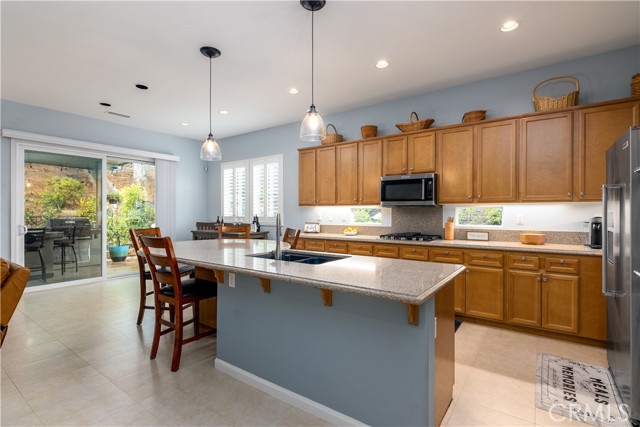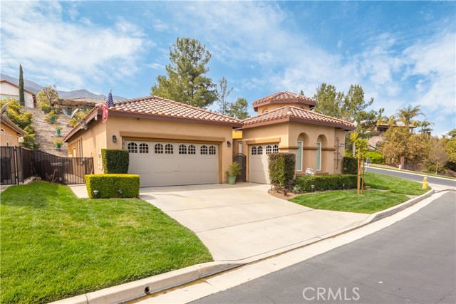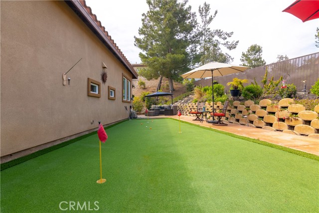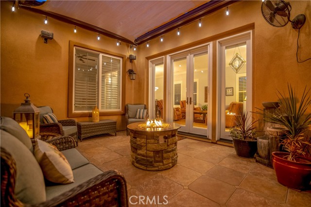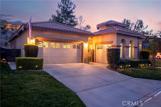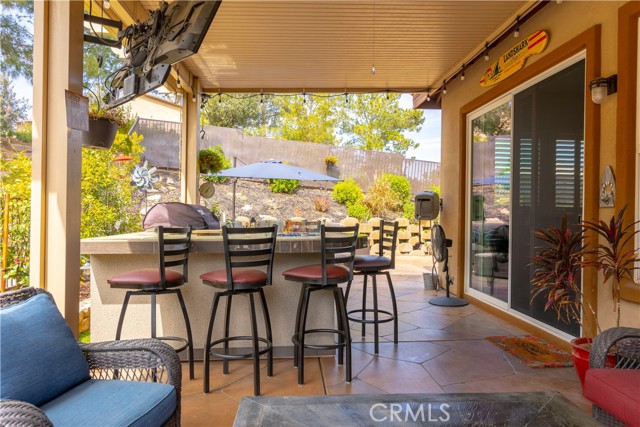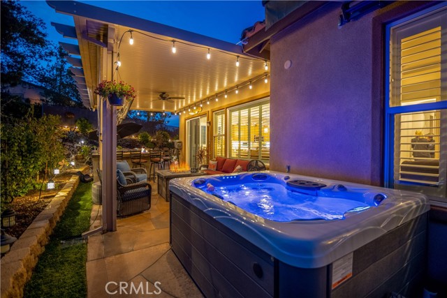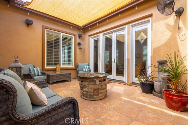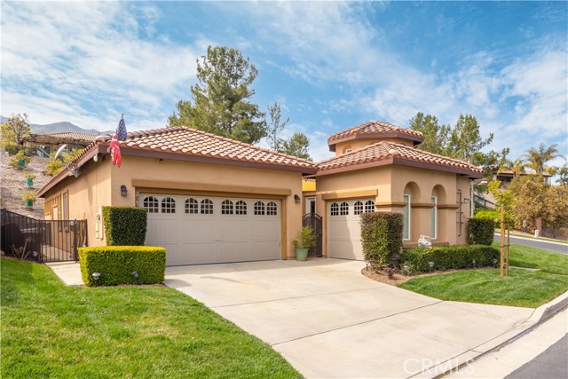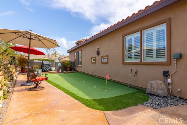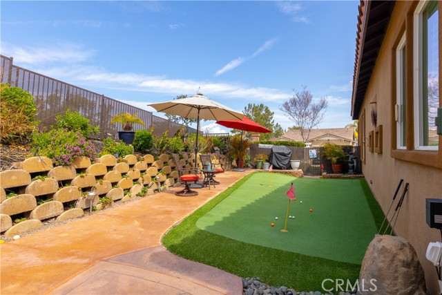 Virtual Tour. Gorgeous single-story San Mateo model home in the prestigious Trilogy in South Corona. This 2 bedroom PLUS an den/office which can also be used as a 3rd bedroom, 2 full baths and 1/2 bath is spread throughout 2216 sq ft of living space. The beautiful kitchen includes granite counters, newer stainless-steel appliances, recessed lighting, huge island, and an eating area that overlooks the backyard. Tastefully decorated with many more upgrades including bamboo hardwood flooring, vinyl shutters and window coverings, Quietcool whole house fan with timer, barn door in master bath, new ceiling fans, new upgraded sink faucets and vanity/cabinet hardware, recently redesigned limestone around fireplace and includes custom mantel, newly added bathroom glass shower enclosure, dedicated laundry room, crown molding, new garage doors and garage ceiling storage. There is a beautiful and private courtyard with its own entry, views of local foothills, canopy, fan, fountain, and lighting. And now for the backyard which is an entertainer's delight - custom Lion gas barbeque with granite island, new ceiling fan, covered patio, remote controlled awning, stamped concrete patio, newly redesigned landscape, and extended side yard with putting green. This is a corner lot location giving you added outdoor living space. Truly, a home that has been loved and well taken care of and the new owner - Just move right in! Trilogy community includes clubhouse, pools, fitness, pickleball, tennis, outdoor amphitheater, and nearby walking and hiking trails.
