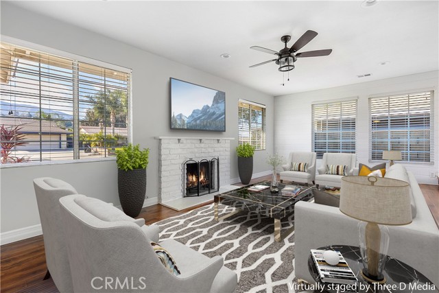 Welcome to this spectacular Single Story home in the highly sought after location in Corona just minutes from Orange County. As you enter the home through double doors you will be embraced by the modern ambiance which includes updated wood laminate flooring throughout. The stunning remodeled kitchen is bright and open with large windows bringing in natural light. Enjoy stainless steel appliances, white shaker cabinets, a farmhouse sink and pendant lighting. The living room features a warm cozy fireplace, modern shiplap wall panels and recessed lighting. The spacious family room features floor to ceiling windows overlooking the large backyard. The primary bedroom has updated sliding closet barn doors and an en-suite bathroom with a walk in shower, quartz counters and dual vessel sinks. Additional features include dual pane windows, updated 2nd bathroom with quartz counters and newer fixtures which leads out to the bonus room. This property has No Mello Roos, No HOA, a Low Tax Rate and close to the 91 fwy.