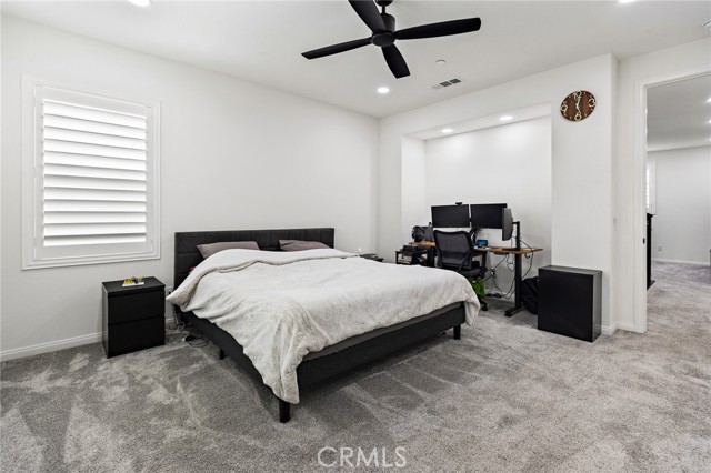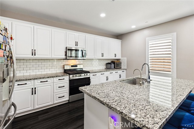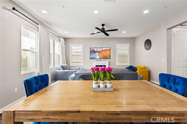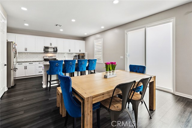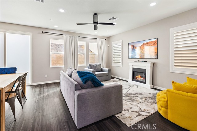 Welcome to your dream home in the exclusive Guard Gated Community of Terramor! This stunning 4-bedroom, 3-bathroom, 2-story residence boasts a perfect blend of elegance and comfort, offering a luxurious lifestyle in a secure and serene environment. As you step inside, you'll be greeted by an inviting open floor plan flooded with natural light, creating a warm and welcoming atmosphere. The interior is adorned with stylish plantation shutters throughout, adding a touch of sophistication to each room. The heart of the home is undoubtedly the beautifully upgraded kitchen. Adorned with subway tile backsplash, granite countertops, stainless steel appliances, and a generously sized kitchen island with a sink, ample storage and bar-top seating- this space is a chef's delight! The kitchen seamlessly flows into an additional dining area and an elegant living room featuring a cozy gas fireplace, perfect for intimate gatherings and relaxation. One of the unique features of this home is a convenient downstairs bedroom with a 3/4 bathroom, providing flexibility for guests or as a home office. Upstairs, you'll discover a spacious loft, a secondary full bathroom, laundry room, two generously sized secondary bedrooms and primary bedroom. The primary bedroom is a true retreat, complete with a walk-in closet, an office nook, and a private bathroom featuring a soaking tub, separate shower, and a double vanity. The outdoor space offers ample room for activities or relaxation. The combination of hardscaping and an astroturf lawn creates a low-maintenance oasis for your enjoyment. This property is not just a home; it's a part of a vibrant community. Residents have exclusive access to the "Veranda" clubhouse and pool recreation area, a recreation park, a dog park, a community garden, kids play area, and scenic walking trails. Convenience is at your doorstep, with proximity to stores, schools, and easy freeway access. One notable feature of this home is its solar power system, providing eco-friendly energy. The property includes a spacious 2-car garage with EV charging hookups and a solar power system with a lease, offering an eco-friendly and cost-effective energy solution. Don't miss the opportunity to make this exceptional property your new home. Experience luxury, security, and community living at its finest! Virtual Tour Available, see matterport link below ! https://my.matterport.com/show/?m=Djs1GUgBvZg&mls=1