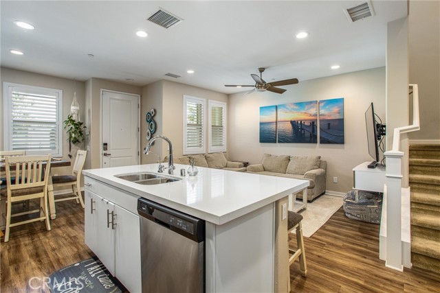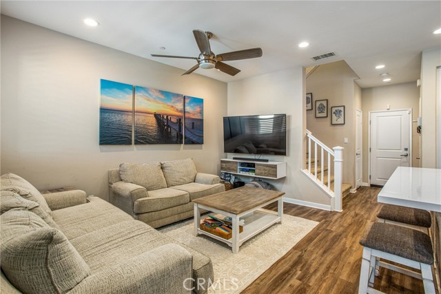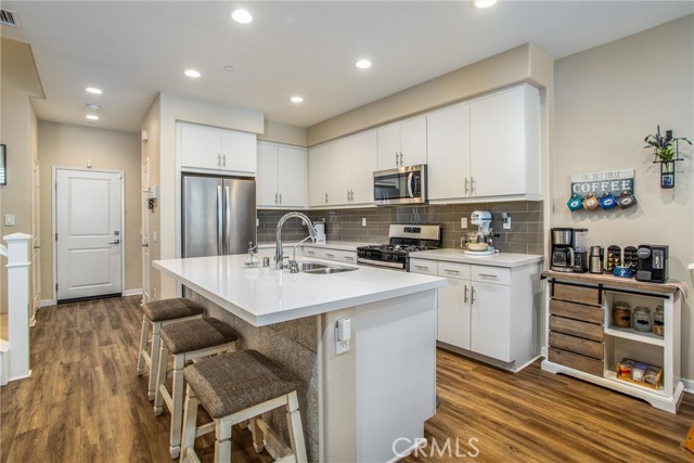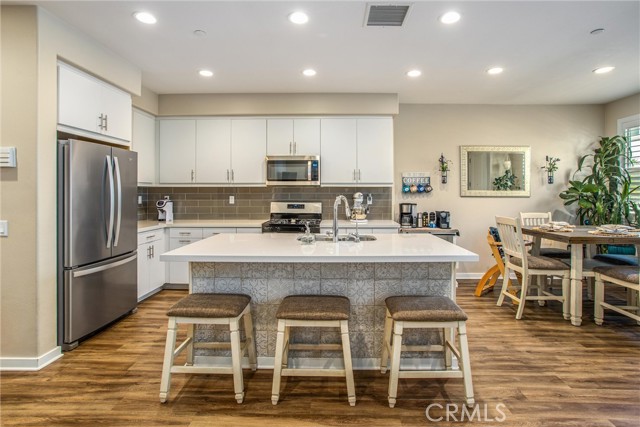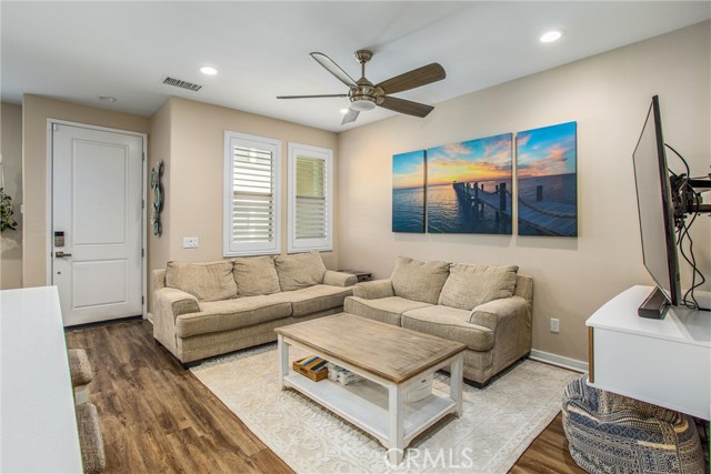 Come experience resort-style living at Bedford! This premium location is next to shopping, theaters, restaurants, and a golf course. This 3 bedroom and 2.5 bath home boasts a luxurious, turn-key open floorplan. Upon entering the home, you are greeted with beautiful Luxury Vinyl Plank flooring, and an open kitchen with quartz countertops, a large island, beautiful white cabinetry, and stainless steel appliances. The open floor plan gives the home a spacious feel that is perfect for entertaining and making memories with your loved ones. As you go upstairs, you will see the two bedrooms and the primary suite. The primary suite has a generous amount of natural light, a large walk-in closet, and dual sinks. The direct-access garage includes plenty of storage, epoxy flooring, and drywall. Some extra bonuses of this home include a whole house fan that helps keep the house very cool, Eco Honeywell thermostat, solar panels to lower your electricity bill, and plantation shutters. The gated Citron at Bedford community is truly a one-of-a-kind resort lifestyle that includes 3 pools, spa, showers, clubhouse, outdoor cooking and BBQ areas, picnic area, bocce ball, horseshoe pits, billiard room, 2 dog parks, The “Shed” (Pool/gym/outdoor workout area), playgrounds, plenty of trails for hiking, bar/lounge, and many more wonderful amenities to come!