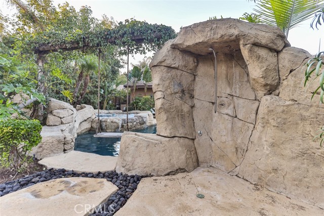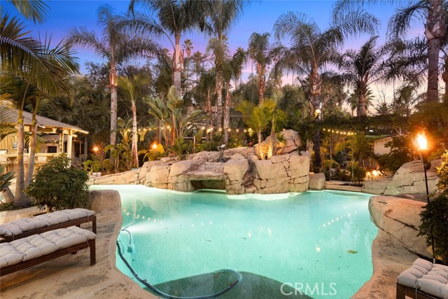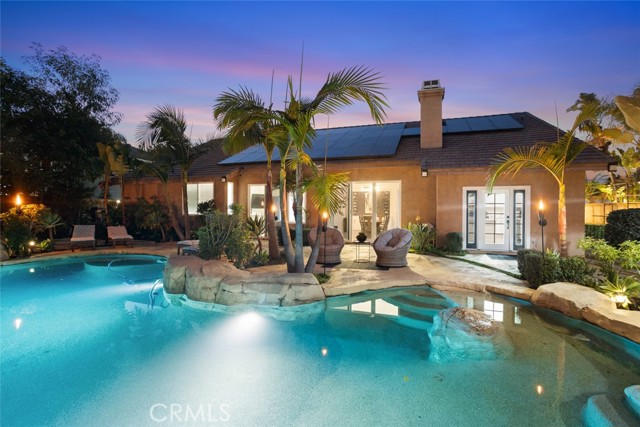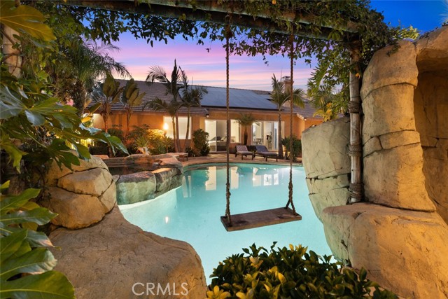 Come fall in love in Corona...California cool, fun and fantastic describes 2531 Cottage Dr.!!! With its spacious soaring ceilings throughout, beautifully appointed upgrades and a yard that can only be described as enchanting, this gorgeous home as so much to offer!!!! New luxury laminate flooring throughout, custom built-ins throughout, newer windows, plantation shutters and upgrades. The living room features custom built-in TV shelving/bookcase as well as more cabinets for storage. Kitchen upgrades include built-in extra large fridge/freezer, double ovens, walk-in pantry, new counter-tops, slow close cabinets, and new sink w/touch sensor faucet. Dining room with sliders backyard with custom cabinets with wine rack and wine fridge. Upgraded bathrooms with custom fixtures and cabinets and all with light & fan sensors that go on automatically as you enter. Whole house fan, 3-car garage with added attic storage with access ladder, and solar panels that are paid for in full. Control lights, sensors, and check your solar usage all from your phone or tablet. Expansive, private, and as I said enchanting backyard that can only be described as your own private resort!!!! A large palapa with brand new freezer, new fridge, TV, overhead heaters all under a new roof. Custom pool with waterfall is over 12 feet deep, spa and custom swing over the water. Ground level trampoline, chicken coop, outdoor shower, playhouse/storage shed, dog run, gate to private access road behind home. Secluded and private grounds with fruit trees, mature palms and lush landscaping. Conveniently located close to the 15 freeway and all of Corona’s shopping, restaurants, golfing, and schools.