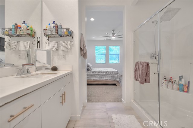 Bathroom Information | Shower in Tub, Double Sinks in Primary Bath, Exhaust fan(s), Privacy toilet door, Walk-in shower |