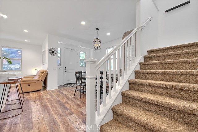 Step into your ultimate dream home experience, where resort-style living becomes your everyday reality. This enchanting townhome is nestled into a premium, quite location that is moments away from Bedford’s Marketplace & Dos Lagos shopping, theaters, restaurants, and even three golf courses, designed by some of golf best architects, offering you a life of convenience and luxury. This 3-bedroom +loft, 2.5-bath home is the largest floorplan in Citron and the epitome of turn-key elegance. As you step inside, you're immediately greeted by the opulent luxury vinyl plank flooring that guides you through an open, meticulously designed kitchen. Revel in the beauty of quartz countertops, a generously sized island, pristine white cabinetry & stainless-steel appliances. The open floor plan is a spacious and bright, has plenty of room for gathering and entertaining. Upstairs, the primary suite is a haven of natural light, offering a substantial walk-in closet and dual sinks in the ensuite bathroom. Your direct-access 2-car garage is pre-wired for an electric car charging station. This dream home comes with plenty of smart home perks as well to simplify your everyday living. A whole house fan keeps the interior refreshingly cool, an Eco Honeywell thermostat ensures energy efficiency, and solar panels are in place to reduce your electricity bill. Beyond your front door, the gated Citron at Bedford community is a true haven of resort-style living. Here, you'll have access to a wealth of amenities at the Hudson House Recreational area, including three pools, a spa, showers, a clubhouse, outdoor cooking and BBQ areas, a picnic spot, bocce ball, horseshoe pits, a billiard room, two dog parks, "The Shed" (featuring a pool, gym, and outdoor workout area), playgrounds, extensive hiking trails, a bar and lounge, and much more to come. Welcome to your dream life, where every day feels like a vacation. Close to award winning schools and convenient FasTrac access to the 15 and 91 fwy for easy commutes into OC, Ontario and/or Riverside. Don't just buy a house, invest in a lifestyle that offers convenience, comfort, and a strong sense of togetherness. Embrace the possibility of calling 2625-110 Verna Drive your home. Priced right, available now & move-in ready... let your new chapter begin here.