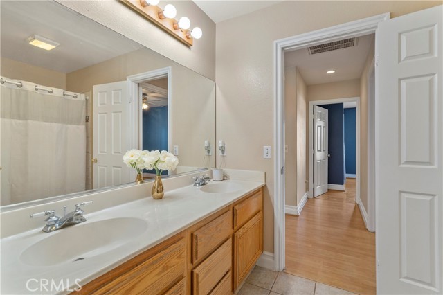 What a great opportunity. Cul-De-Sac home in the highly sought after Mountain Gate neighborhood of South Corona. No HOA, and Mello Roos. Conveniently located to the 15 & 91 Fwy, nearby parks, shopping centers and in the highly rated Corona-Norco Unified School District. This home features beautiful curb appeal and pride of ownership. When you enter the double door entry, notice the high ceiling which opens up the space and large windows that let in plenty of natural light. The living room flows to the dining room and tile flooring throughout. A downstairs bedroom perfect for guests or your own private office. The kitchen features an island, cabinet space, eat in area, breakfast counter and open to the family room with a cozy gas fireplace. The half bath on the first floor has newer tile flooring and can be converted to a full bath. On the second level is the main bedroom suite,with dual closets, dual sinks, soaking tub and shower. Four other good size bedrooms with ceiling fan and a full jack-and-jill bath. The pool size backyard space is great for entertaining, and relaxing in the tropical theme garden. A covered patio for keeping cool and a gated area to the side great for pets. A lot of potential in this home to make it your own.