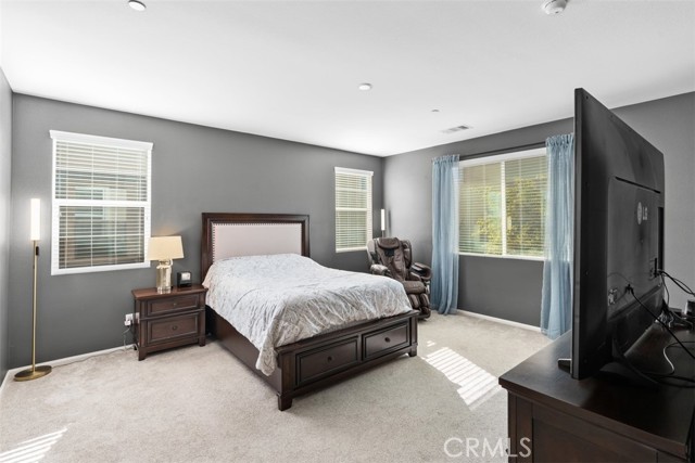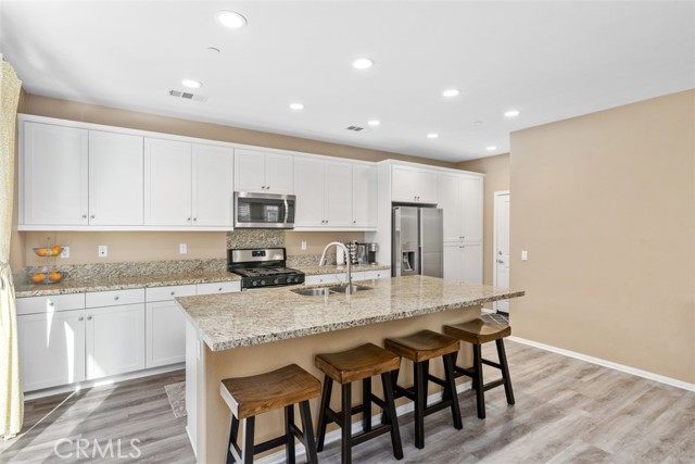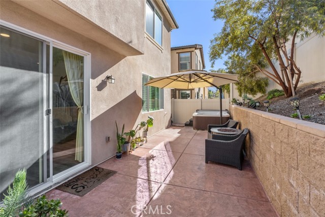Located in the exclusive gated community of Terrassa and built in 2016, this beautiful home boasts 3 bedrooms 2.5 bath, 1,807 sqft of living space and 2,597 lot size. Its open and airy floor plan presents a contemporary design with Spanish exterior style. The interior features beautiful kitchen with granite countertops, european style white cabinets with satin nickel knobs, large island and stainless steel appliances. The gorgeous laminate floors continue to living/dining and kitchen area with custom blinds and neutral colors throughout. The spacious primary bedroom features plush carpet, 9' feet ceilings and en-suite master bath with separated tub/shower, dual sink, large walk-in closet and plenty of storage. The additional two bedrooms upstairs offer all dual pane windows, plush carpet, blinds and access to hallway bath with modern touches. The laundry room is located upstairs for convenience. The backyard has finished landscaping and the two car garage offers Epoxy floors, additional storage, tankless water heater and direct access to the interior. The Radiant barrier roofing, high performance insulating exterior stucco, pre-plumbed for solar and R-9 insulated steel garage door are additional features. Close to The Crossing at Corona and The shops at Dos Lagos offering premium shopping, dining and entertainment. Easy access to 15 FWY and Toll Roads.
