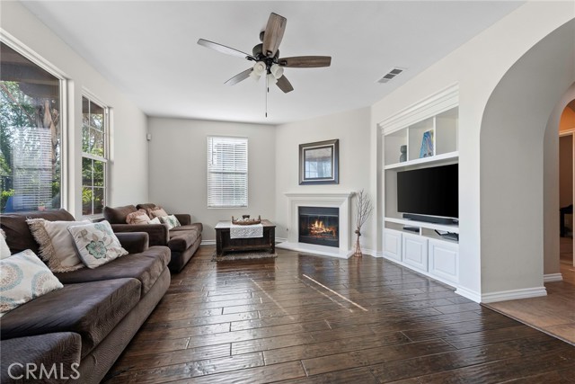Dos Lagos Golf Course Beauty! This detached home overlooks the golf course including large pond. Views from many windows and rooms, including master bedroom with French doors to large deck and secondary bedroom with veranda. Gorgeous Spanish style! Beautiful entry with full guest bathroom and bedroom downstairs. Great room with fireplace, built-in media center and dramatic views of the golf course and hills. Large, open dining space with access to patio Kitchen with large island/breakfast bar, 5-burner gas range, built-in microwave Upstairs offers Hollywood (Jack-n-Jill bedrooms/bathroom) Master bedroom includes huge walk-in closet, Roman tub and separate shower. Convenient upstairs laundry room with sink. Gorgeous, low maintenance backyard with views, views, views, firepit, covered patio, sun shade, apple and nectarine trees. Spacious 2-car garage with plenty of storage space.