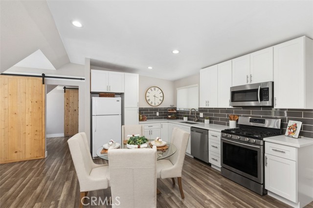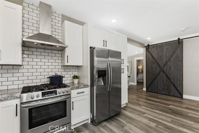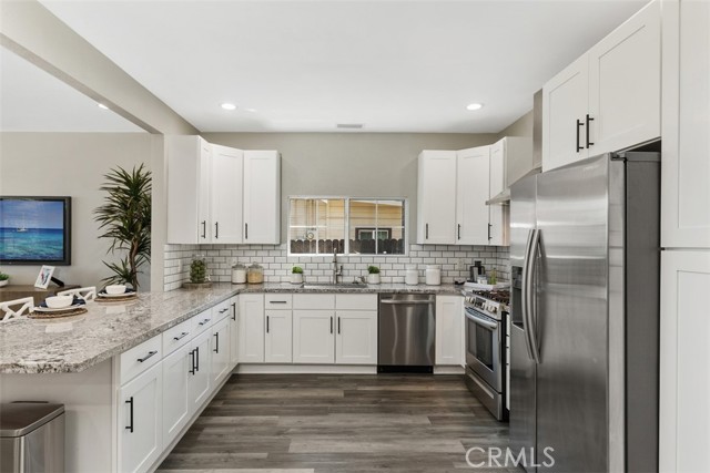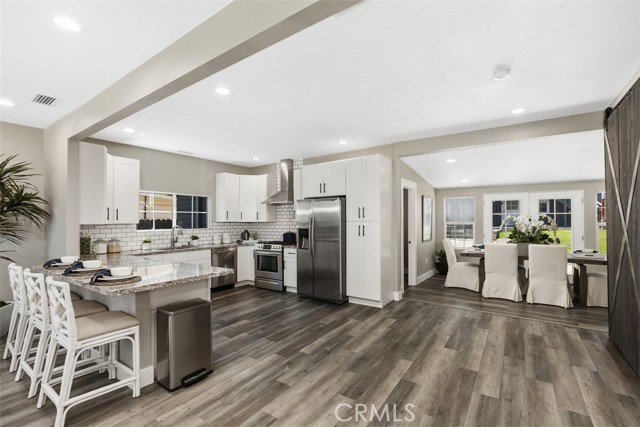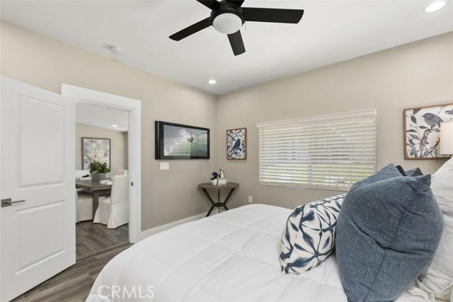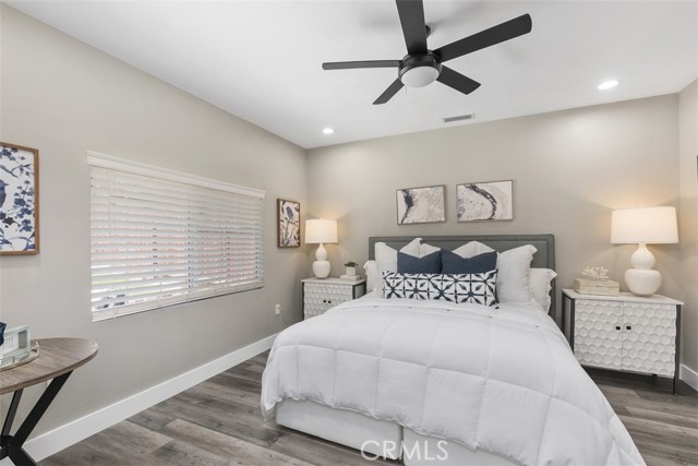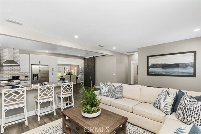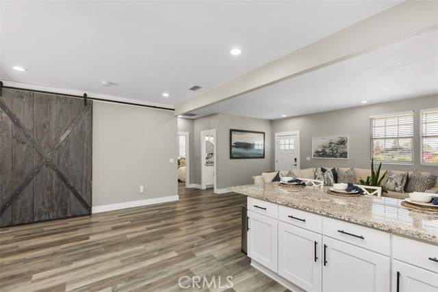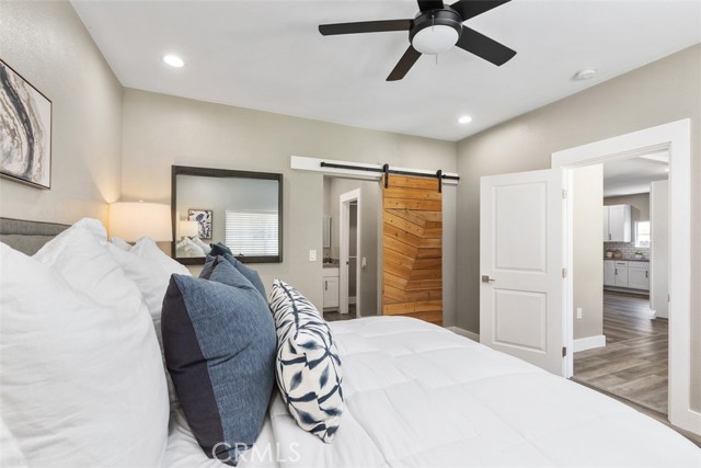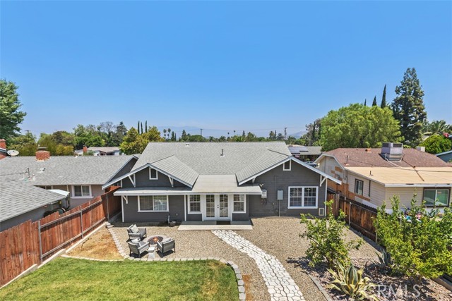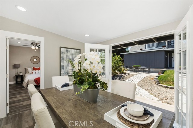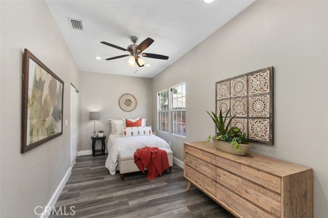 Welcome to your dream home in the heart of Central Corona! This stunning 3,000 sqft property on a 7,405 sqft lot features a beautifully updated single-level residence with 3 spacious bedrooms and 2 modern bathrooms in the main house, plus an additional bedroom and bathroom in the back house (ADU). Every detail has been meticulously crafted, from the new laminate flooring and granite countertops to the chic barn-style sliding doors, ceiling fans, and recessed lighting. The open floor plan in the main house ensures seamless flow between the living room, dining area, and well-appointed kitchen w/ stainless steel appliances, perfect for everyday living and entertaining. Step outside to the private backyard, where you'll find a cozy fire pit, a patio area ideal for dining, and lush citrus trees, creating a serene outdoor oasis for relaxation and entertainment. Adding to the home's appeal is the oversized detached garage, which can house up to 3 or more cars (currently configured for one car and a workshop). Above the garage, the back house (ADU) offers a perfect blend of modern comforts and traditional elegance, with its own private entrance, a cozy living room, a full kitchen, a generous bedroom with ensuite, and a dedicated office space. This versatile space is perfect for guests, rental income, or a private retreat. Nestled in a peaceful neighborhood with no HOA, this home is conveniently located within walking distance to Main Street and near the 91 and 15 freeways, shopping centers, restaurants, schools, and Corona Regional Medical Hospital.This home provides the perfect blend of comfort and accessibility. Don't miss the opportunity to own this exceptional property. Schedule your private tour today and experience all that this remarkable home has to offer!
