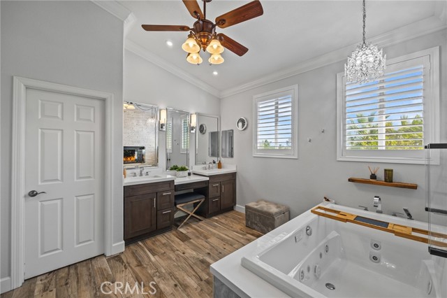 Bathroom Information | Bathtub, Shower, Closet in bathroom, Double sinks in bath(s), Double Sinks in Primary Bath, Dual shower heads (or Multiple), Exhaust fan(s), Hollywood Bathroom (Jack&Jill), Jetted Tub, Main Floor Full Bath, Quartz Counters, Remodeled, Separate tub and shower, Soaking Tub, Upgraded, Vanity area, Walk-in shower |
