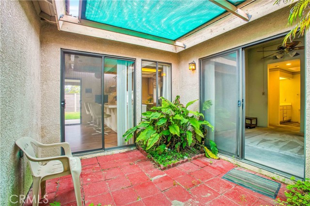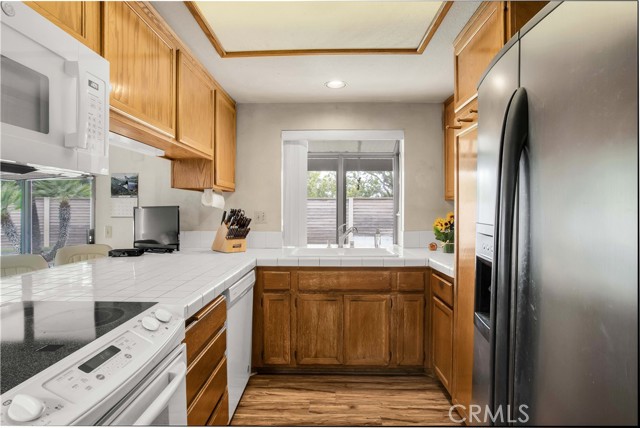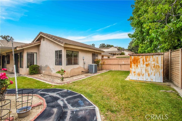 Welcome to this charming 3-bedroom, 2-bathroom home with 1,280 square feet of comfortable living space, situated in a friendly neighborhood. The spacious living room features a cozy fireplace, and the two-car garage offers ample parking and convenient laundry hookups. The primary bedroom includes an ensuite bathroom with a walk-in shower, while the guest bathroom features a shower-tub combo. The kitchen, with its tile countertops, provides beautiful views of the backyard from the sink. Enjoy the privacy of a fenced backyard complete with a storage shed, and unwind in the outdoor shaded courtyard accessible from both the primary bedroom and kitchen through sliding glass doors. Conveniently located across the street from the HOA poolhouse, this home offers easy access to amenities while maintaining tranquility. Yes, this home needs a little bit of love and attention but it has the potential to be an amazing home. Don't miss this wonderful opportunity to own a delightful home in a desirable location— schedule your viewing today!