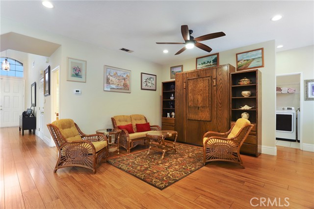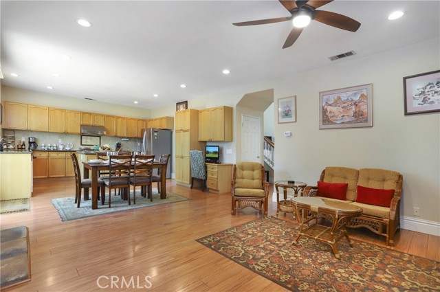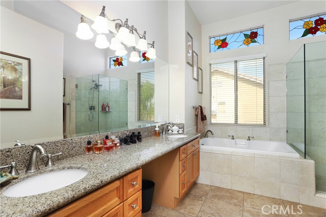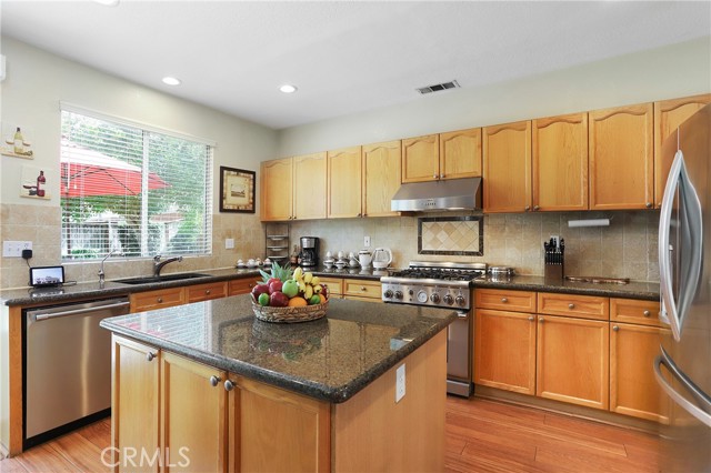 Stunning Turnkey! One of the most desirable South Corona neighborhoods. No HOA. Low Tax. Mello Only $76 and expires this year. Walking distance to Santiago High School and Orange Elementary. Cul-de-sac. Great Curb Appeal. Superbly landscaped pool size entertainer's backyard features "Bose" speakers and surround sound and the soothing sounds of water fountain. Well manicured front yard with shade trees. Huge Loft whose windows are equipped with sun resistant screens. 3 Bedrooms upstairs. Downstairs Full Bedroom and Downstairs Full Bathroom. Seller is only the second owner. Top of the line Stainless steel Thermador Stove and dishwasher. Custom fitted LG refrigerator. Two Ductless, split level AC/heater room units controlled by hand held remotes in primary and secondary bedrooms for added comfort. As you enter you are greeted with Cathedral ceilings and premium oversized windows that allow natural sunlight to pour in from everywhere making the interior bright and cheerful. OPEN Living room and Kitchen layout. Granite countertops. Spacious 3 car garage and wide driveway. Fenced, shady, gated dog run in backyard. Shopping and freeways close by. Call today to make this wonderful home yours.