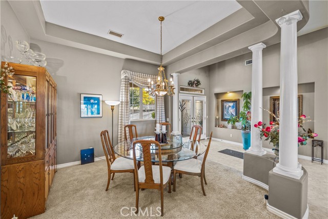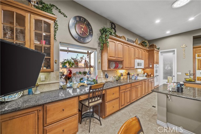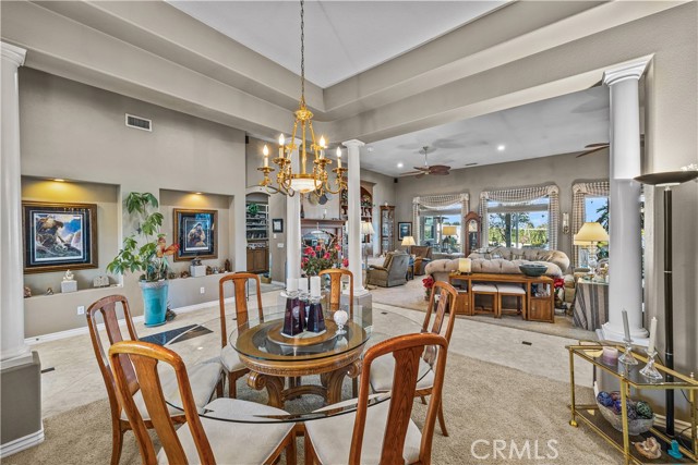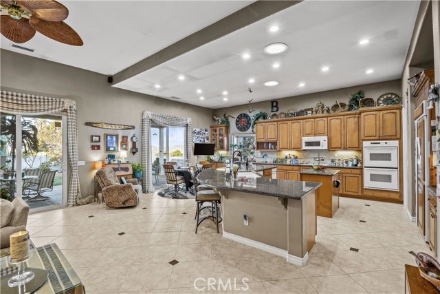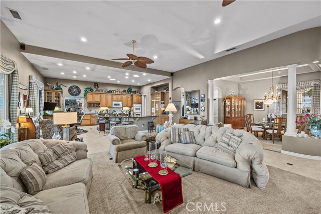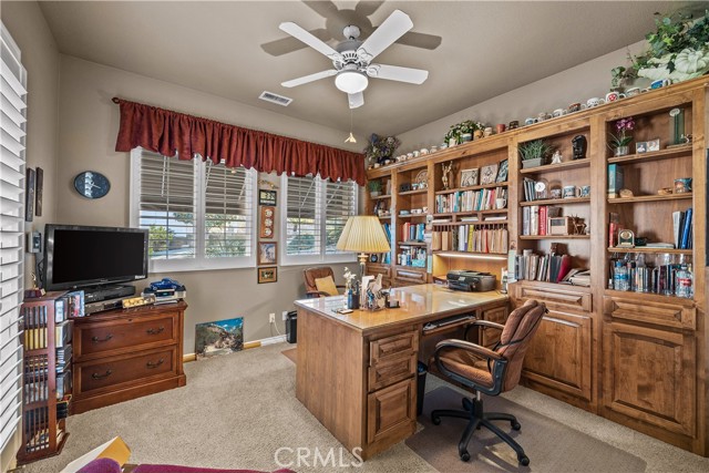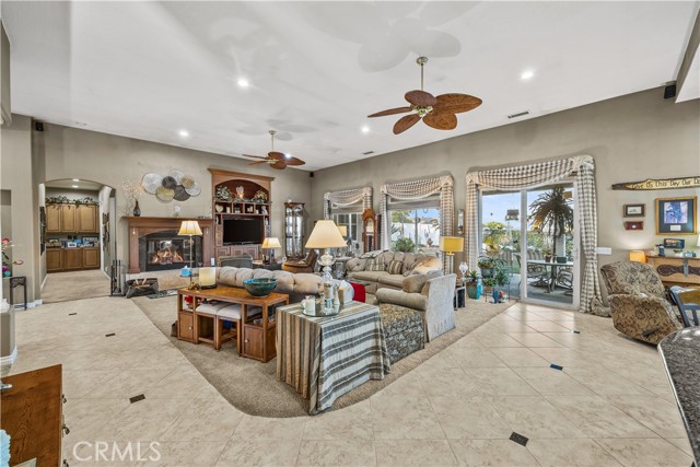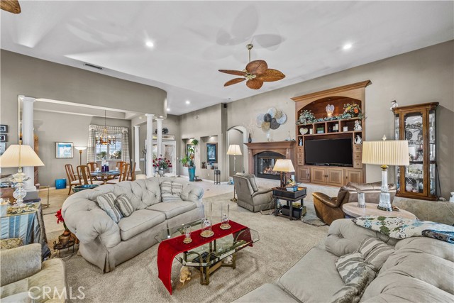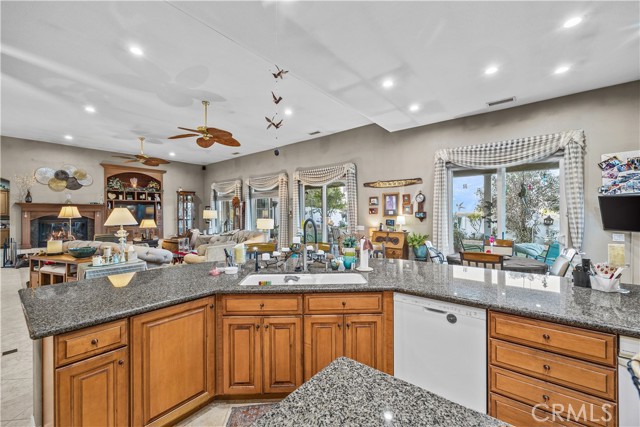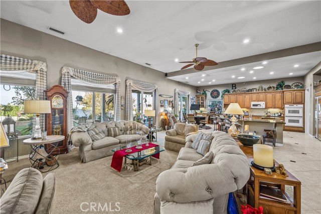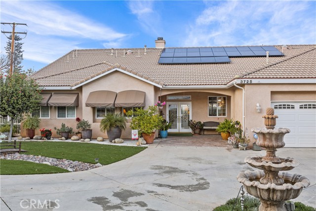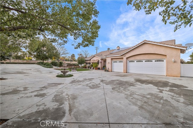 Drive down the large circular driveway with a fountain In the center to this custom-built single-story home on almost ½ acre. When you enter the home you can feel it was lovingly designed and built by the original/current owners and all you can say is WOW! Entering the great room with attention to detail from the wood-burning fireplace, expanse of windows looking out on the manicured back yard, built-in entertainment center and 12-foot high ceilings. The gourmet kitchen has a center island (with seating) and a prep island, stove, dishwasher, microwave, trash compactor, built-in refrigerator and large walk-in pantry.There is also a butler’s pantry near the dining room. There are 4 bedrooms (one is being used as an office with a door to the outside.) 3 full bathrooms. The primary suite has a gas fireplace and doors to the patio. The primary bath has a large Jacuzzi tub, and dual-head walk-in shower. There are two walk-in primary closets. All bedrooms have plantation shutters.There is a large laundry room and over-size 3-car garage. The patio is under the tile house roof.The back yard includes 3 Satsuma mandarin trees and a storage shed. There is drive-through RV parking area.There are no homes behind and the property is on a corner.Oh, did we mention they have paid off solar, no HOA and special assessments are only $47.38 a year. What more could you possibly want?