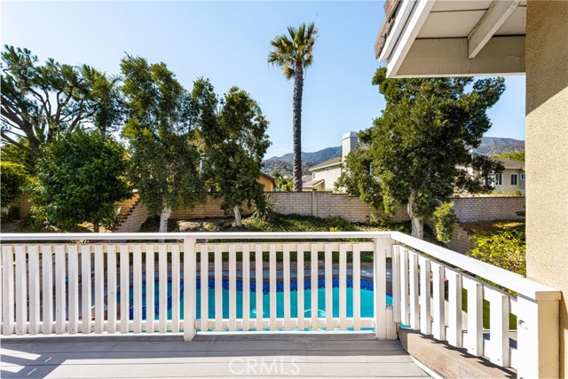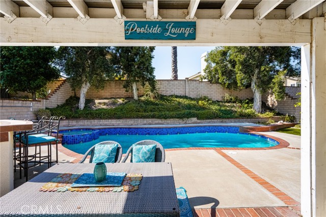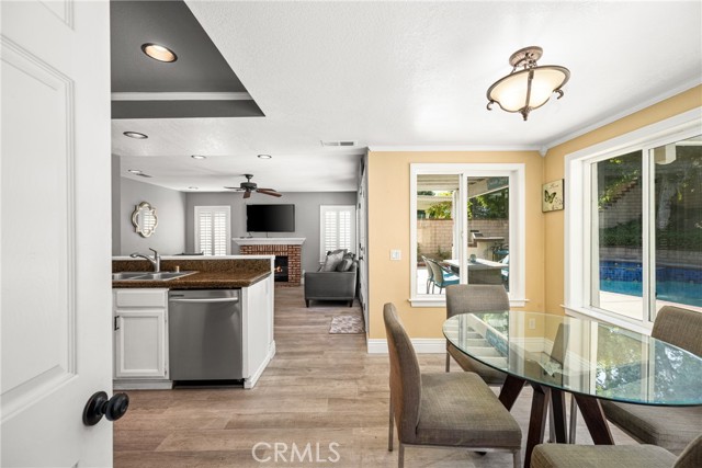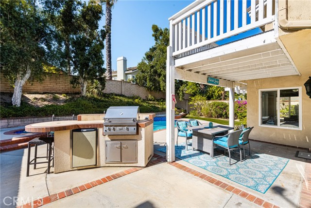 Bring the vacation to you in this stunning pool-home, nestled in the coveted community of Sierra Del Oro, in Corona. Boasting a rare 3-car garage and upgraded from floor to ceiling, no detail has been overlooked. This bright cape cod home features a glittering pool, surrounded by lush greenery for maximum privacy and a resort-like lifestyle. Enjoy the mountain view beneath the veranda or entertain guests at the built-in barbecue (complete with a spacious countertop and stainless outdoor refrigerator). Inside, high ceilings and recessed lighting keep the contemporary, open floorplan feeling bright and airy. The renovated kitchen features a full-height backsplash in elegant tile-detail, with bright cabinetry and a full suite of stainless appliances. Enjoy casual meals in the dining nook with a 180-degree view of the manicured yard or take formal meals in the dining room beneath a beautiful chandelier. Each bathroom is upgraded with contemporary vanities and granite countertops. All four bedrooms enjoy a touch of luxury, with crown-molding upgrades, ceiling fans, and dual-pane windows to welcome in the beautiful natural light. An expansive master suite features its own private balcony, the perfect place to take in sprawling mountain views over the crystal blue pool. The oversized walk-in primary closet even features its own full organization system. Only steps from hiking and biking trails at Fresno Park, minutes from numerous shopping and dining opportunities at the Green River Promenade, and a convenient commute to Orange or L.A. County. This home has it all.