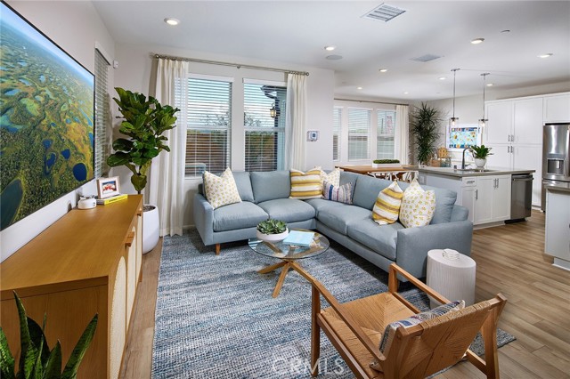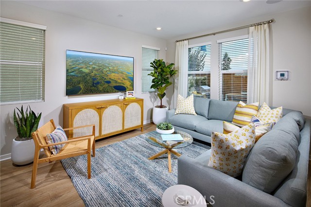 Ready for immediate move-in! Positioned without rear neighbors, this home welcomes abundant natural light and an added touch of privacy. Presenting the Ellis Plan 1, boasting 1,730 sqft, three bedrooms, two and a half baths, an open great room, kitchen, dining area, a second laundry room, and an enclosed outdoor patio for entertaining. This residence features a meticulously selected design studio upgrade package (Elite Style B) showcasing GE stainless steel appliances, white cabinets throughout, quartz countertops, and luxury vinyl plank flooring. Move in now and experience a home that combines thoughtful design with modern amenities. Inspired by Monterey and Mediterranean architecture, Ellis at Bedford in South Corona offers residences the opportunity to live close to world-class amenities such as resort style pools, spa, Sidecar Bar, outdoor dining area, hammocks, kids park, BBQ’s, lawn games and more. With nearby shopping, major roadways and award winning schools, Ellis is the perfect place to call home!