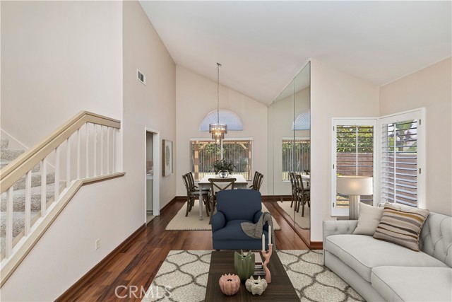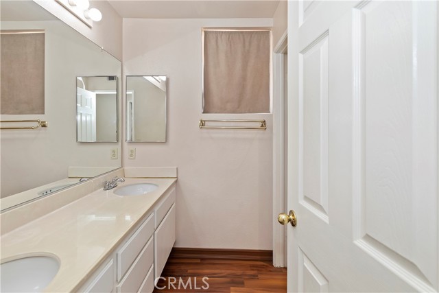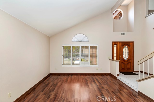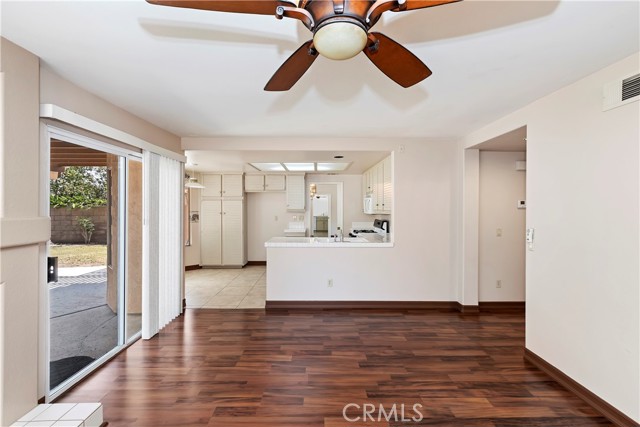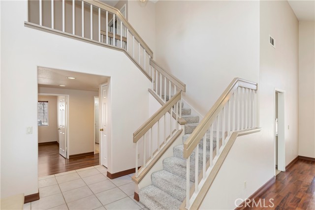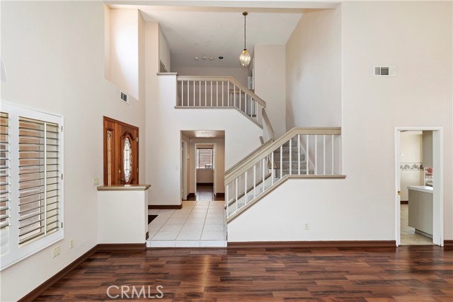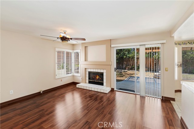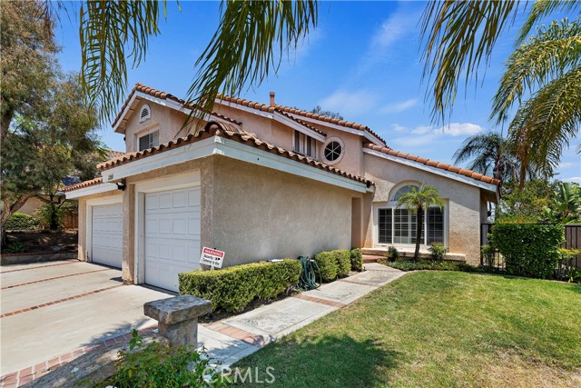 Gorgeous 4 bedroom home on single-loaded street in Corona! You are welcomed home with a 3 car garage and oversized driveway space. Home boasts cathedral ceilings upon entry, as you embark into the formal living and dining room, with stunning laminate flooring. Continue through the pocket door into the kitchen, which has a breakfast nook and lots of cabinet space! Cabinets feature custom distressed detailing. The kitchen opens up to the family room also featuring the gorgeous laminate flooring, & a cozy fireplace. The family room opens up to your generously sized backyard, with lots of space to entertain and garden. Completing the downstairs is a nicely sized MAIN FLOOR BEDROOM & FULL BATH, along with a separate laundry room just off the direct garage entrance. Up the stairs you will find the large primary bedroom, along with 2 other spacious bedrooms. The primary bedroom features a city lights view and attached en-suite. The primary bath comes with a separate tub & shower, along with an oversized walk-in master closet, and private water-closet. Down the hall is a mini-suite, as well as an additional spacious bedroom, each containing ceiling fans. The upstairs hallway bath features dual sinks, and an additional door to the shower and water closet, assisting with privacy. Home is conveniently located near 15 & 91 fwys, as well as walking distance from large shopping center. HVAC recently replaced!
