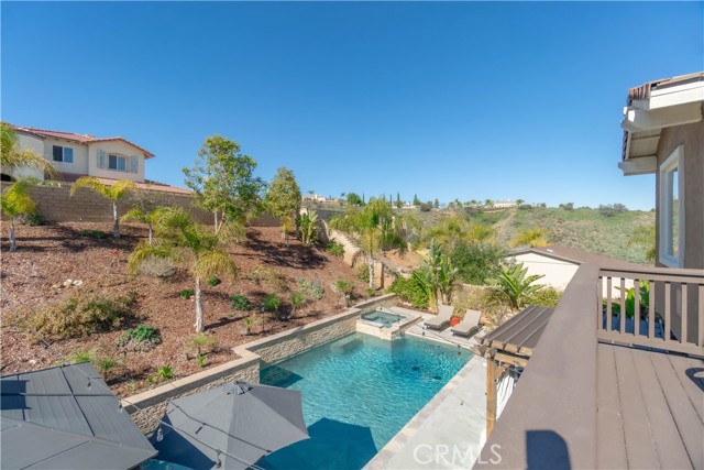 MUST SEE! TURNKEY EXECUTIVE SOUTH CORONA GEM! This Upgraded Home is Located In The HIGHLY SOUGHT AFTER "Eagle Glen Masters" Community. VIEWS VIEWS VIEWS!!!! GORGEOUS OPEN FLOOR PLAN, 5 Bedroom 4 Bath home SHOWS BEAUTIFULLY! Upstairs Also Features A Large Loft Which Can Be Used As A Theater Room As Well! Located Within A CALIF DISTINGUISHED SCHOOL DISTRICT! Relax In Your New EXTREMELY PRIVATE Backyard Paradise, Which Includes A Pool, Jacuzzi Hot Tub Spa, Professionally BUILT Patio with Plenty Of Seating To Enjoy Your Dream Backyard! This Property Also Features A Master Bedroom Deck, Where You Can Rewind, Relax, & Take In The Views! This Is TRULY AN ENTERTAINER'S DREAM! Nestled Near The Base Of The CLEVELAND NATIONAL FOREST, This Property SHOWS LIKE A MODEL HOME! Close To THE PRESTIGIOUS SKYLINE TRAILS! This UPGRADED EXECUTIVE PROPERTY Includes Renovations Throughout, OPEN KITCHEN TO FAMILY ROOM With GRANITE COUNTERS, TILE And LAMINATE FLOORING THROUGHOUT, CROWN MOULDING, STAINLESS STEEL APPLIANCES, NEW INTERIOR PAINT, NEW LANDSCAPING, NEW REMODELED MASTER BATHROOM, SOLAR AND MORE. SECOND GARAGE For More Storage! This Home is TRULY A SPECIAL PROPERTY. Super Close To The 241 Toll Roads, YOU ARE ONLY 25 MINUTES TO ORANGE COUNTY. CONVENIENTLY LOCATED CLOSE TO FWYS, SHOPPING, PARKS, WALKING TRAILS AND RESTAURANTS...THIS WILL GO FAST!
