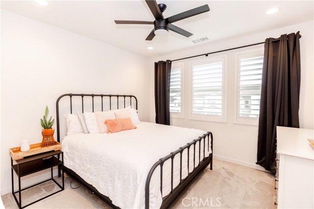 TURNKEY HOME - Very popular floorplan, low maintenance living. Home features an open layout, 3 Beds and 2.5 Baths, and 2 car garage with direct access. Located within the Master planned gated community of Bedford Canyon with views of the scenic Santa Ana Mountains. Upgraded flooring throughout home, Quartz counter tops, Solar panels, Ceiling fans, Whole House fan and Plantation shutters throughout home, Epoxy flooring in garage. Impressive amenities just down the street at The Hudson House. The gated Citron at Bedford community is truly a one-of-a-kind resort lifestyle that includes 3 pools, spa, showers, clubhouse, outdoor cooking and BBQ areas, picnic area, bocce ball, horseshoe pits, billiard room, 2 dog parks, The “Shed” (Pool/gym/outdoor workout area), playgrounds, plenty of trails for hiking, bar/lounge, and many more wonderful amenities to come! Close proximity to entertainment, dining, and shopping at Dos Lagos, Cajalco Shopping Center, and Tom's Farms. Nearby Golf Courses, hiking and biking trails. Easy access to FWY and minutes away from Orange County.