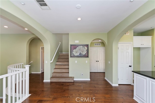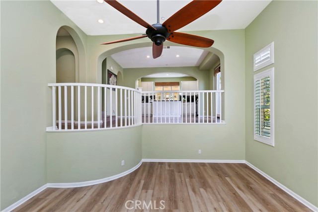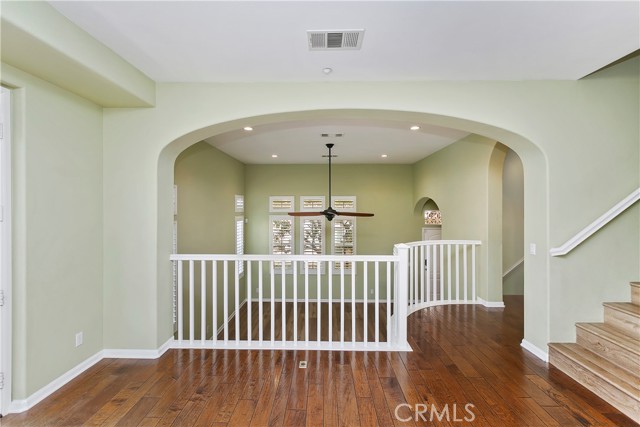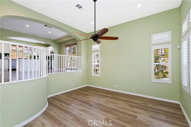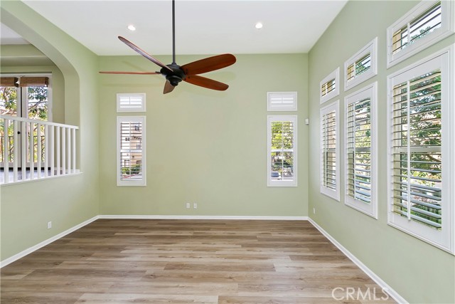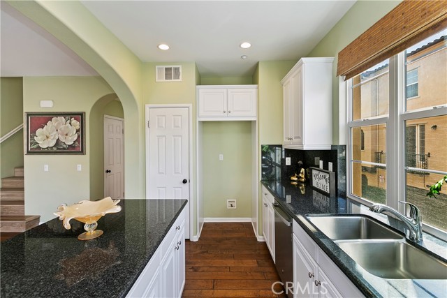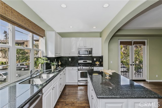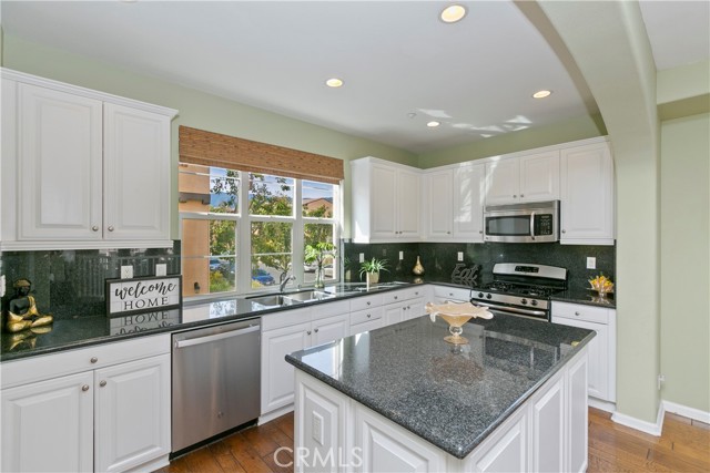 Enjoy the Dos Lagos Lifestyle, convenient to everything, walk to "The Shops", restaurants, theaters, night life and summer concerts at the stadium. . Located in a gated community, highly desirable end unit which has glass French doors and numerous windows for an abundance of light for a more open feel. This gorgeous home has a dramatic entry, 14-foot soaring ceilings, wood floors, granite island kitchen, all stainless-steel appliances, white cabinets, under cabinet accent lighting, pantry, plantation shutters, upgraded baseboards, ceiling fans in every room, beautiful spa like master bath, vanity area and walk-in closet. This home is 1825 Sq/Ft, 3 bedrooms, 3 baths, deck, inside laundry, built in 2009, 2 car garage with extra storage area and work bench. Market Street has association pool, spa, cabana's, clubhouse and a golf course right across the street.