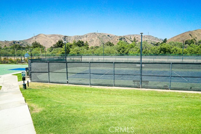 Location Matters! Your Ideal Home Awaits in the Green River Community! Conveniently situated near the Orange County and Riverside border, this charming 3 bed, 2.5 bath home in the highly desirable Green River guard-gated community is ready for you! It offers great curb appeal with a beautiful, large shady tree and brick hardscape. Inside, you'll find a spacious interior featuring recessed lighting and a fantastic opportunity to customize your flooring, paint, and countertops to your taste. The living room welcomes you with soaring 2-story ceilings, a cozy brick fireplace, and plenty of natural light. It flows seamlessly into the dining room, which opens up to the kitchen. The kitchen has wood cabinetry, tile countertops, and bar seating, making it perfect for casual meals. The first floor also includes a convenient half bathroom. Upstairs, you'll find all the bedrooms, including a generous primary suite. The primary suite features an updated ensuite with stylish vessel sinks and a luxurious soaking tub with a shower combo. Two additional bedrooms share a full-size hall bathroom. Step outside to your delightful backyard, complete with well-maintained landscaping and a paved patio. This lovely space is ideal for relaxation and entertaining. Spectacular clubhouse features billiards, table tennis, foosball, a great gym with weight machines and racquetball/handball courts. Outside a huge pool and spa, children's playground, tennis and pickleball courts. Don't miss out on this beautiful home in a fantastic location.
