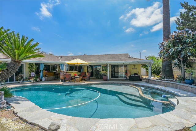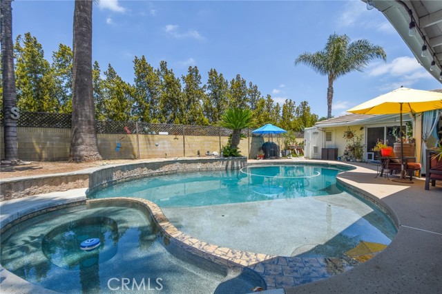 The perfect home…This floor plan is unique with the master bedroom on one side of the house and 3 bedrooms on the other side of the home. You have the ability to close a door and the other three bedrooms are private with a common hallway and upgraded bathroom with a contemporary stand-up shower with bench inside of shower. Large living room with a grand fireplace. Kitchen is perfect for cooking and is open to the large dining area with custom ceilings and hard wood floors. This floorplan is amazing. The backyard boasts a newly refinished pool and jacuzzi with custom pebble tech. Newer filtration system for the pool with a variable speed pump. Custom outdoor bar area by the pool. New energy efficient air-conditioning and heater. The home is beautifully landscaped and appointed. This single-story home is absolutely gorgeous in a very desirable neighborhood of Corona. This is a huge opportunity that does not come around very often. LOW LOW TAX RATE!.