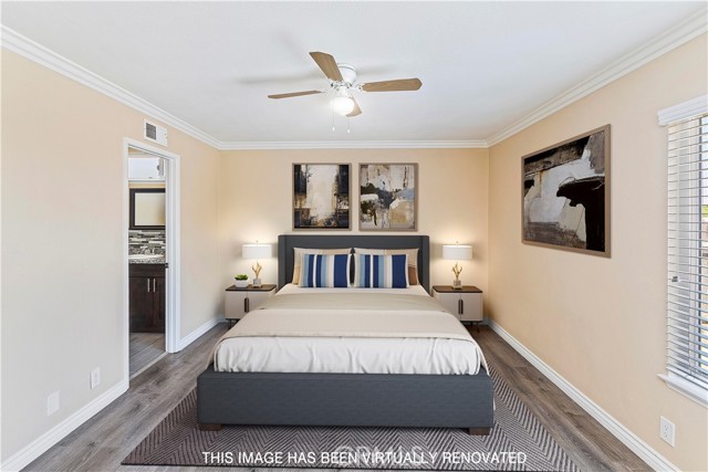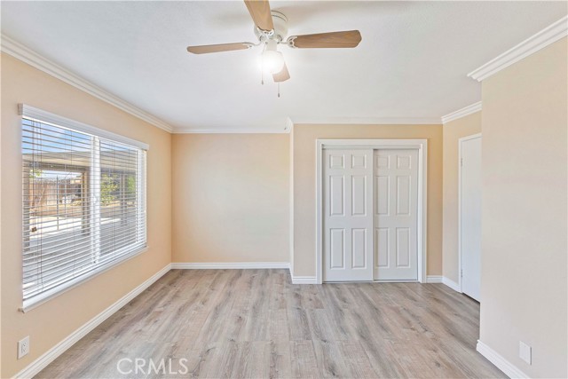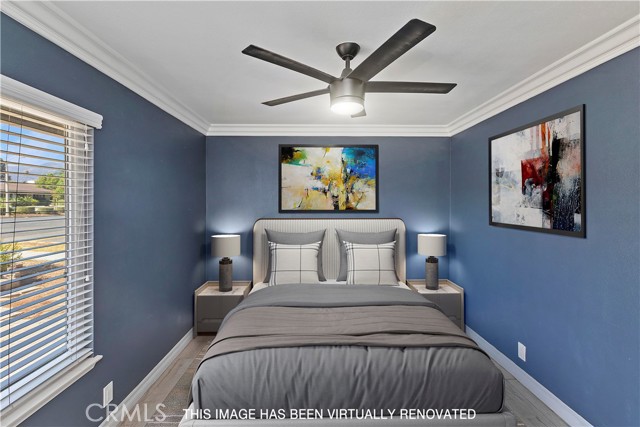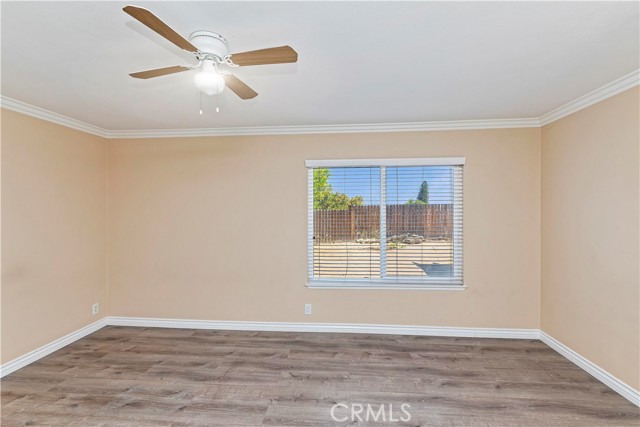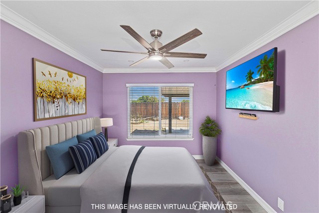 This single story Corona home with 4 bedrooms and 2 baths is CORNER LOT-SITUATED and on almost a 1/4 ACRE of land and with approximately 15' of width on the side of the home, RV PARKING is certainly a possibility!! The home features a simple yet functional layout, complemented by crown molding that adds a touch of elegance to the bedrooms and the flooring is a mix of durable laminate and tile, making it easy to maintain. VERY low taxes, NO HOA, and a convenient location -- this property is ready for you to make it your own!