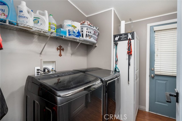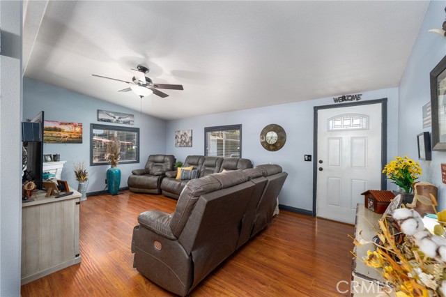 Welcome Home! This corner lot home offers a huge yard. Laminate wood floors through out. This home features 3 bedrooms, 2 full bathrooms, indoor laundry room, large living room, open kitchen with dining area. Their are ceiling fans in each bedroom, mirrored closet doors in the master bedroom, vaulted ceilings in the living & kitchen area, and central air & heating. The shed offers great extra storage and the carport holds 3 cars easily. There is RV parking on site for an additional small fee. The community features a club house with full kitchen, a fitness center, 2 indoor spa's, an outdoor pool, Jacuzzi, play ground and basketball court.