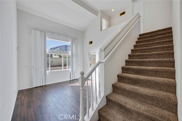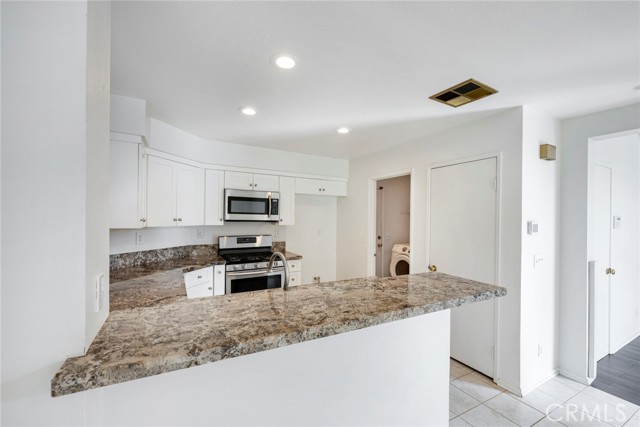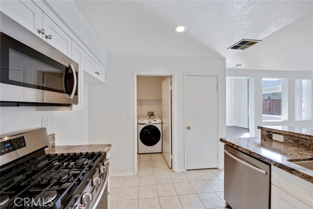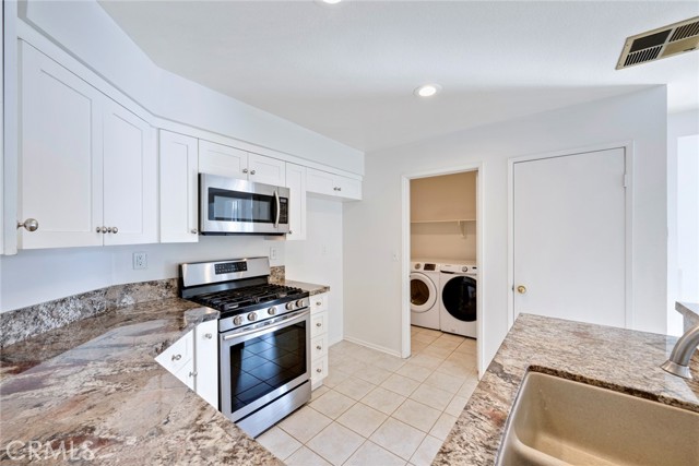 This light and bright 3 bedroom/2.5 bath home offers soaring vaulted ceilings and expansive windows for great natural lighting. Priced in mind with needing cosmetic touches, this open concept home offers ceramic tile in entry, downstairs half bath, kitchen and family room, with beautiful wood look tile in the living room. From your two-car attached garage (with brand new water heater), you enter into a laundry room, which comes equipped with a washer and dryer! From there, the kitchen (updated 5 years ago) adjoins the family room with a fireplace and slider, which opens to the backyard with concrete and numerous fruit trees, the perfect balance of entertaining space and greenery. Three upstairs bedrooms, with a large primary bedroom and en suite bathroom offers a tub/shower, dual sinks, and walk in closet. Quiet whole house fan is great to bring in the cool evening air. There is a large granite slab in the garage that matches the kitchen and can be used to update the bathroom countertop. Paint, new carpet, and window coverings will make this home your own! Low HOA in a gated community and close to freeways.
