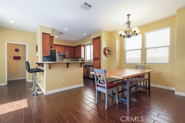 Welcome home to this beautiful residence in the River Road Villages in the heart of Corona! Located in a quaint neighborhood, this 4 bedroom and 2.5 bathroom home offers a well desired floor plan for modern living. You are welcomed with a front and side patio which is low maintenance, perfect for entertaining! Upon entering, you enter the warm fireplace lit living room which leads to a separate private dining room right next to the kitchen. The kitchen offers granite counters, bar seating, stainless steel appliances. A great open floor plan is perfect for gatherings. This home features ample natural lighting throughout. A powder room and laundry room are located at the main level as well along with direct access to the 2 car garage. Second level offers spacious bedrooms on plush carpet. Primary bedroom meets at the end of the hallway with a big ensuite bathroom with dual sink vanity, stand up shower and two walk in closets. A fabulous location means shopping, and dining is also very nearby. This home is surrounded by schools, abundant parks and recreational facilities with easy access to the 15 and 91 freeways. Association amenities include a pool, spa, playground and lots of space to stroll in the gated community. Come get a glimpse of this must-see home! Do not miss out on the opportunity to own this home.
