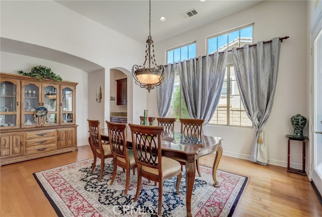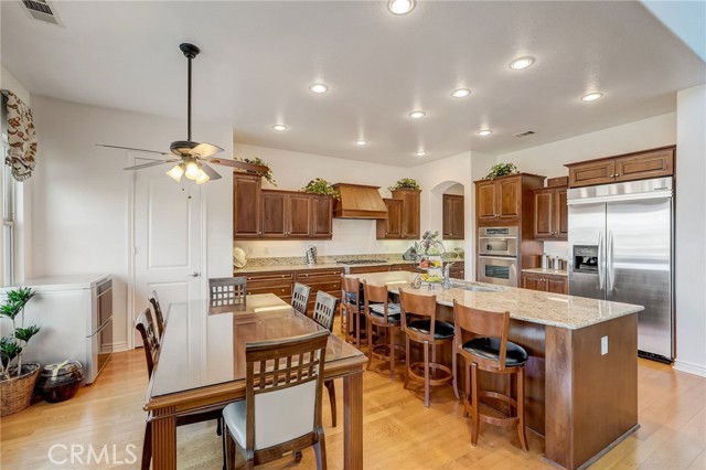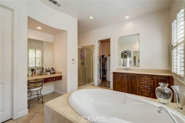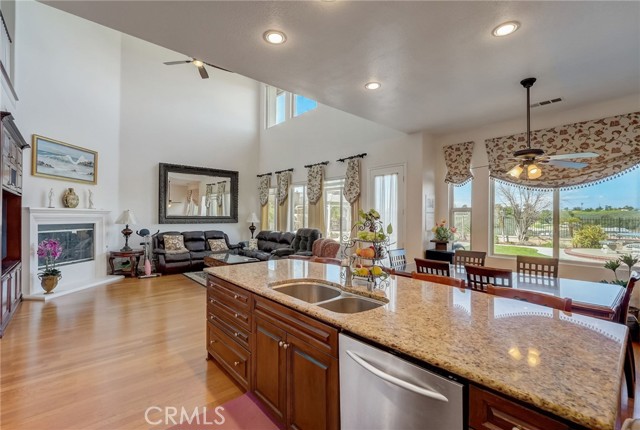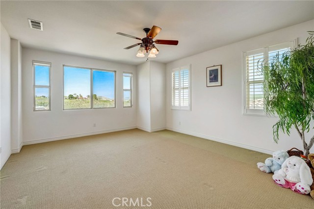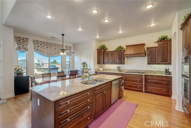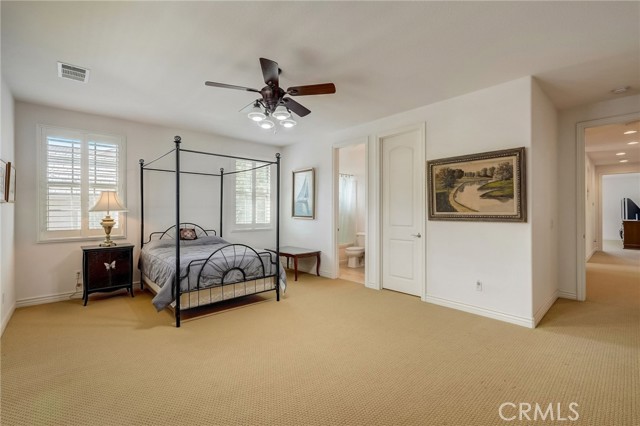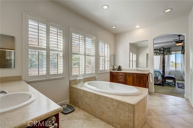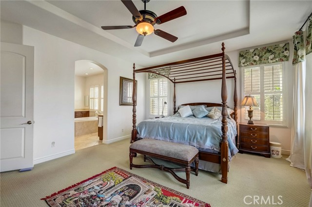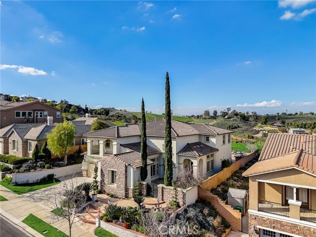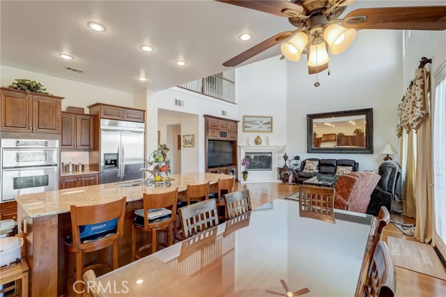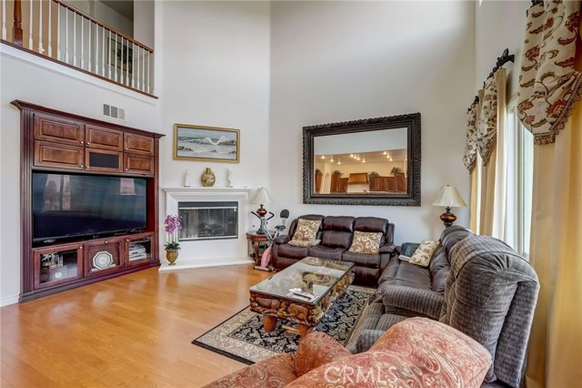 Immaculate executive home with stunning views of the snow capped mountains. Downstairs Master + 3 Master sized bedrooms, plus one guest bedroom for a total of 5 bedrooms and 4.5 bathrooms. Gated courtyard entry. Formal dining room, formal living room. Huge family room with soaring 20 foot high ceilings. Gourmet kitchen island with stainless steel appliances, including Sub Zero refrigerator. Lots of upgrades throughout the home, including: plantation shutters, custom ceilings fans, hardwood floors. Oversized backyard with lots of hardscape, a built in Gazebo surrounded by a rock fountain, a built in BBQ island, and fruit trees. Both side yards are concreted in and have room for lots of toys. 3 car garage with epoxy flooring. Located in the Retreat the Inland Empire's premiere 24-hour manned gated community.
