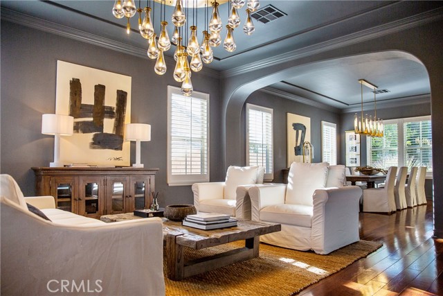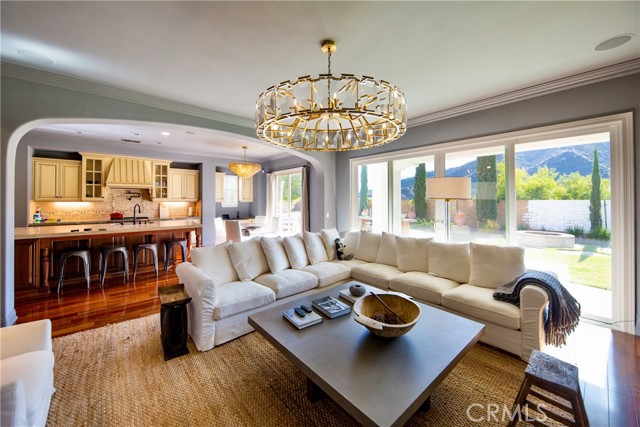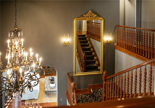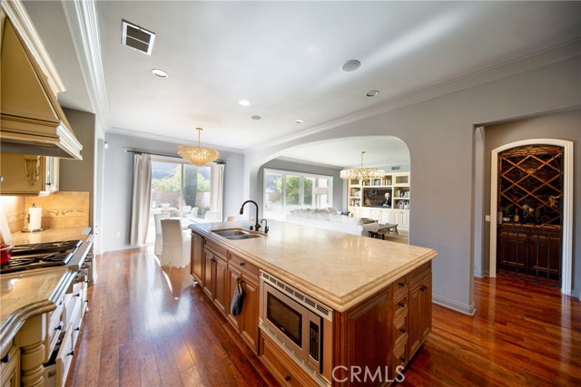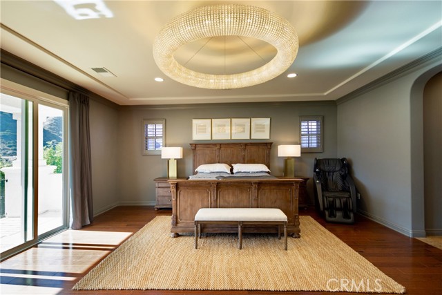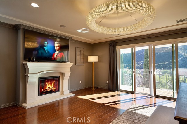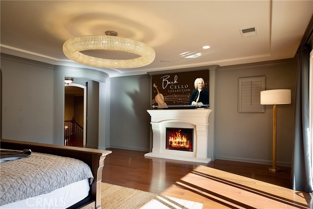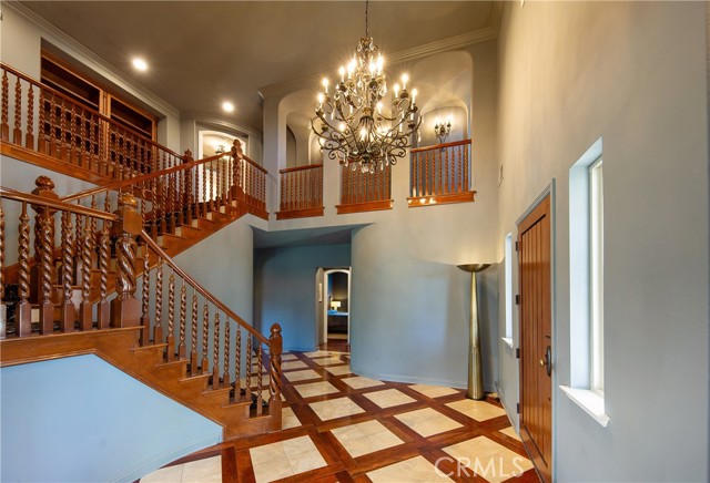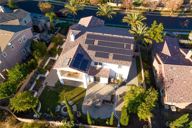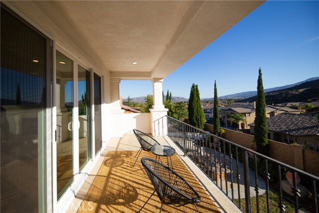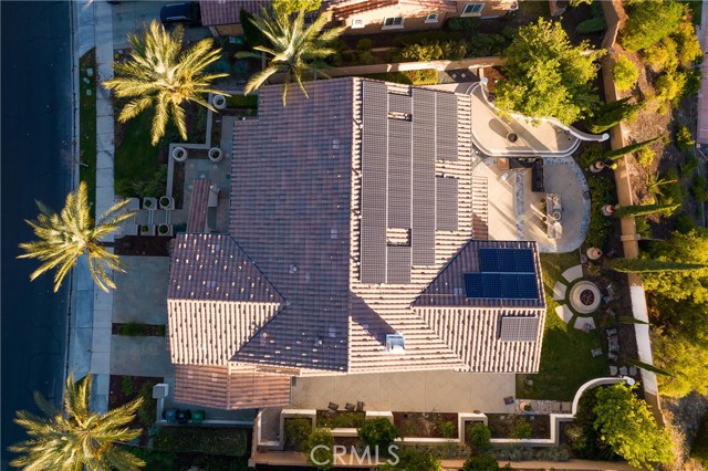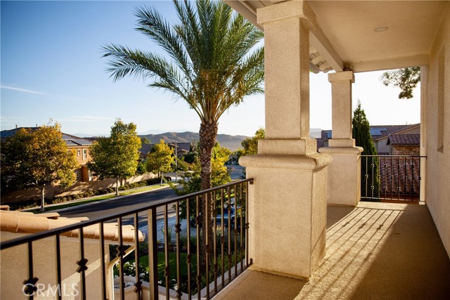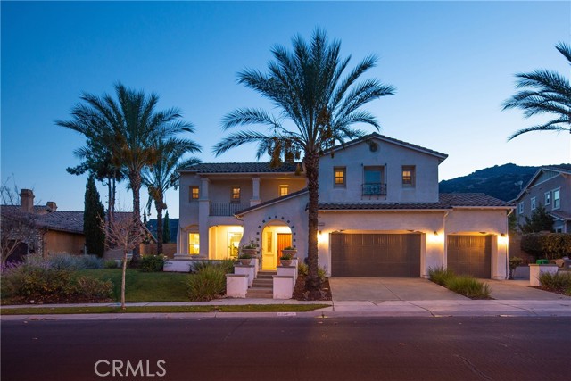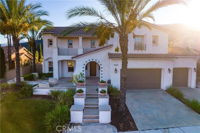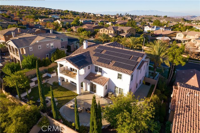 Experience the epitome of luxury with over $700,000 in upgrades, including PAID OFF SOLAR, High-end RH lights, Smart Home system, Custom carpet and more! This exquisitely designed former model home is a true marvel, situated in the prestigious 24hr manned gate guard community of The Retreat. As you step into this 5-bedroom, 4.5-bathroom home, you'll be captivated by its timeless design. The entry hall features a soaring 20-foot ceiling, while the living room, family room, and kitchen boast impressive 10-foot ceilings. Revel in sophistication with high ceilings, a dramatic custom staircase, crown molding, wood shutters, custom carpet, hardwood and travertine floors. The Chef's Kitchen featuring a substantial travertine island, a built-in Thermador fridge, Bosch appliances, a built-in desk, a Butler's Pantry and a charming Wine cellar. Connecting seamlessly to the family room and dining area, the kitchen is adorned with matching French white cabinets. Whether you're entertaining guests or enjoying a quiet night by the fireplace, built-in entertainment center and a newly upgraded sliding door. The first floor offers a spacious Guest Room with a private ensuite bathroom, ideal for guests or multi-generational living. Ascend the grand staircase with wood floors and custom carpet from Israel to discover the second level. The Master Suite is upgraded with new sliding door to the covered balcony, providing a perfect retreat for coffee in the morning or wine in the evening. A romantic custom sandstone fireplace with a built-in TV adds a touch of luxury. Dual master closets with full organization systems lead to an ensuite bathroom with a soaking tub, his and hers sinks, and a beautifully tiled shower. Upstairs, explore three more generously sized bedrooms, each offering unique features. Two bedrooms share a Jack & Jill bathroom, while the third bedroom boasts a full ensuite with a bathroom attached and panoramic views. The Bonus Room is a perfect entertainment space, featuring a full wet bar with a fridge/freezer and another walk-out balcony. Outside, the backyard invites relaxation with lush green grass, a cemented patio, and a gas fire pit, providing an ideal setting to enjoy Southern California's beautiful weather. Conveniently located just minutes away from abundant shopping and dining options, this residence is a haven of comfort and luxury in one of Corona's most sought-after locations.