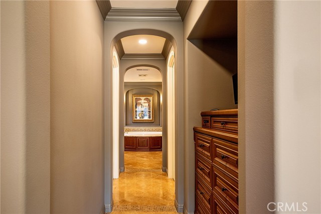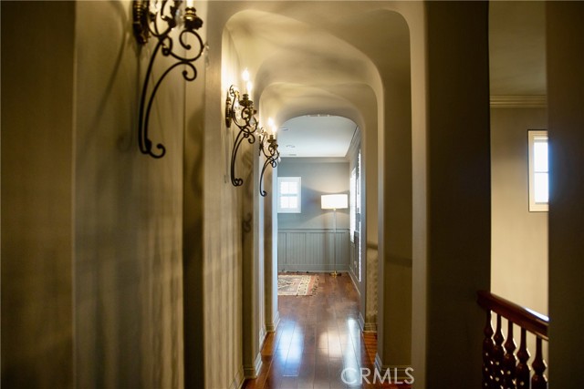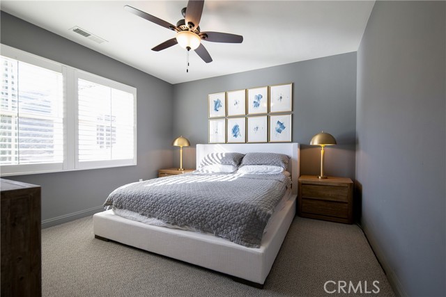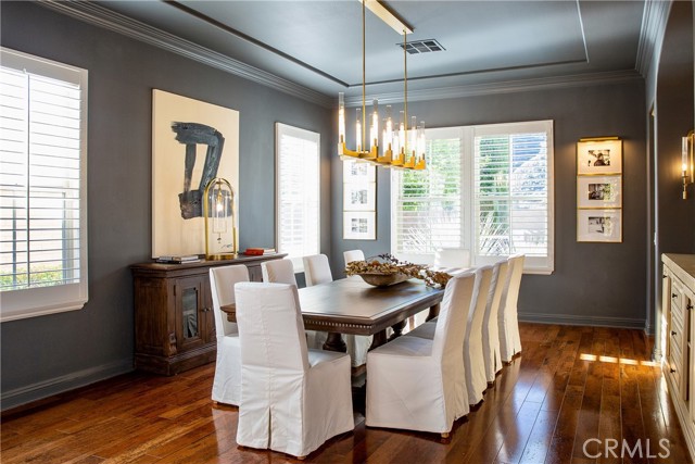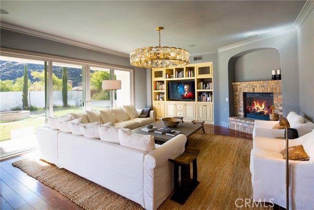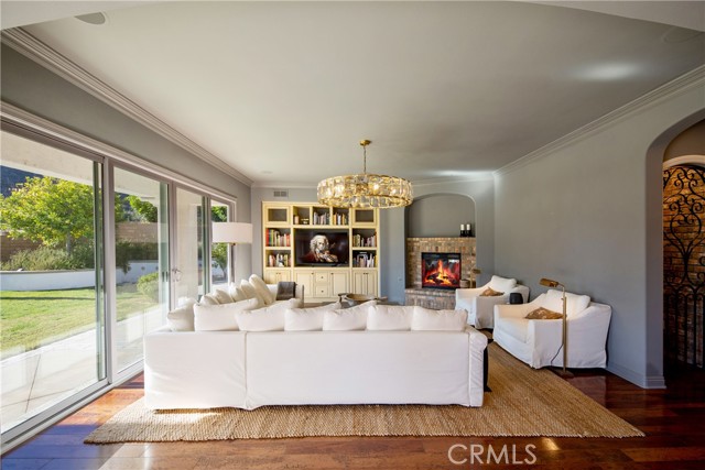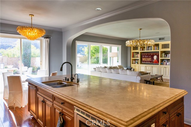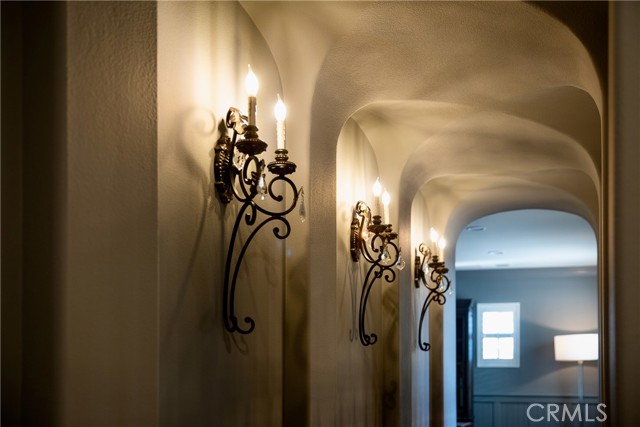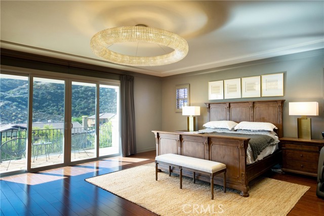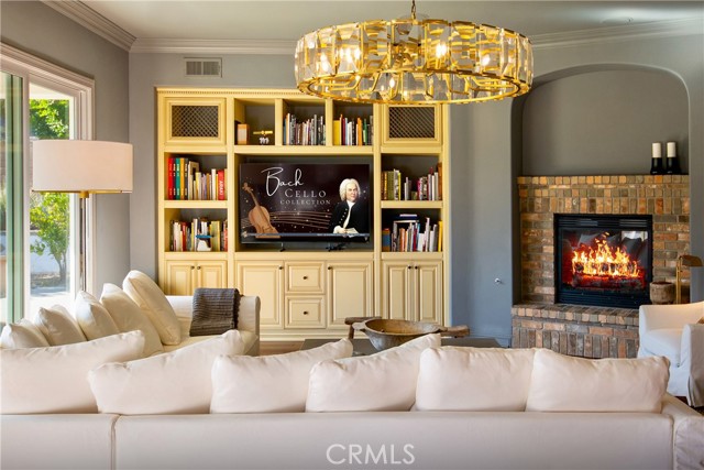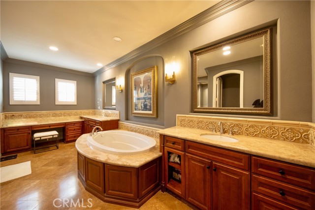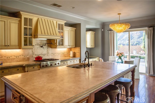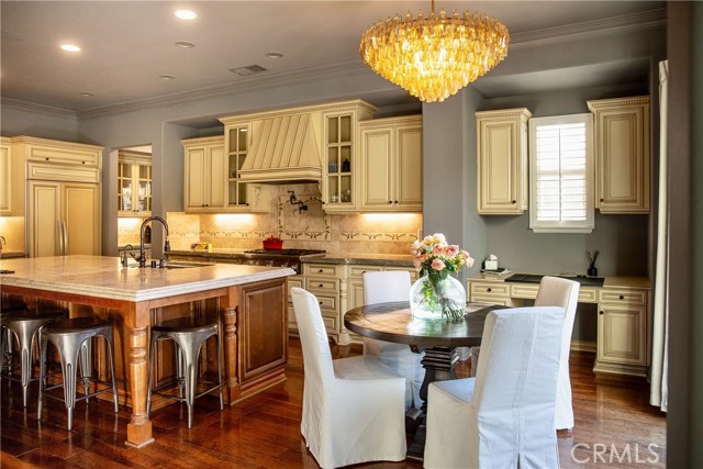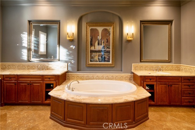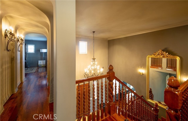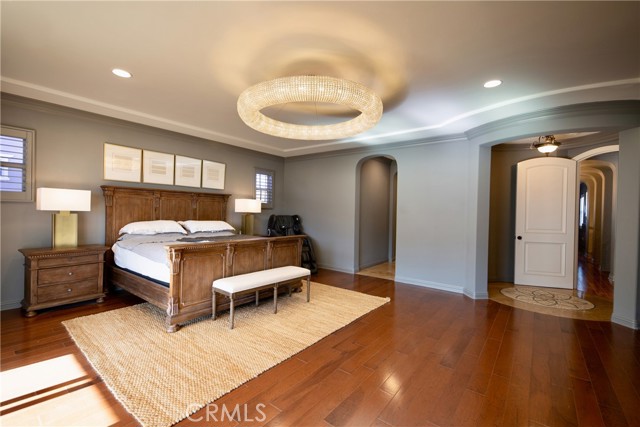 Experience the epitome of luxury with over $700,000 in upgrades, including PAID OFF SOLAR, High-end RH lights, Smart Home system, Custom carpet and more! This exquisitely designed former model home is a true marvel, situated in the prestigious 24hr manned gate guard community of The Retreat. As you step into this 5-bedroom, 4.5-bathroom home, you'll be captivated by its timeless design. The entry hall features a soaring 20-foot ceiling, while the living room, family room, and kitchen boast impressive 10-foot ceilings. Revel in sophistication with high ceilings, a dramatic custom staircase, crown molding, wood shutters, custom carpet, hardwood and travertine floors. The Chef's Kitchen featuring a substantial travertine island, a built-in Thermador fridge, Bosch appliances, a built-in desk, a Butler's Pantry and a charming Wine cellar. Connecting seamlessly to the family room and dining area, the kitchen is adorned with matching French white cabinets. Whether you're entertaining guests or enjoying a quiet night by the fireplace, built-in entertainment center and a newly upgraded sliding door. The first floor offers a spacious Guest Room with a private ensuite bathroom, ideal for guests or multi-generational living. Ascend the grand staircase with wood floors and custom carpet from Israel to discover the second level. The Master Suite is upgraded with new sliding door to the covered balcony, providing a perfect retreat for coffee in the morning or wine in the evening. A romantic custom sandstone fireplace with a built-in TV adds a touch of luxury. Dual master closets with full organization systems lead to an ensuite bathroom with a soaking tub, his and hers sinks, and a beautifully tiled shower. Upstairs, explore three more generously sized bedrooms, each offering unique features. Two bedrooms share a Jack & Jill bathroom, while the third bedroom boasts a full ensuite with a bathroom attached and panoramic views. The Bonus Room is a perfect entertainment space, featuring a full wet bar with a fridge/freezer and another walk-out balcony. Outside, the backyard invites relaxation with lush green grass, a cemented patio, and a gas fire pit, providing an ideal setting to enjoy Southern California's beautiful weather. Conveniently located just minutes away from abundant shopping and dining options, this residence is a haven of comfort and luxury in one of Corona's most sought-after locations.