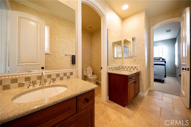Bathroom Information | Shower, Shower in Tub, Closet in bathroom, Double sinks in bath(s), Double Sinks in Primary Bath, Exhaust fan(s), Main Floor Full Bath, Privacy toilet door, Separate tub and shower, Stone Counters, Upgraded, Vanity area, Walk-in shower |