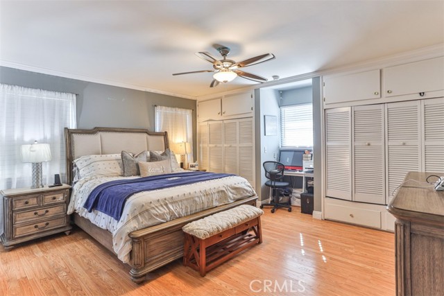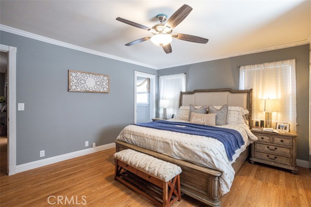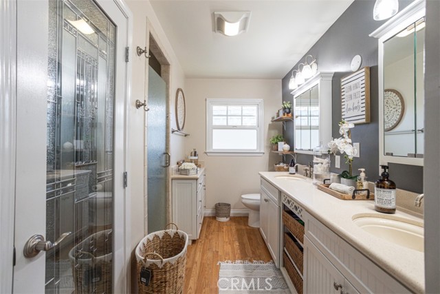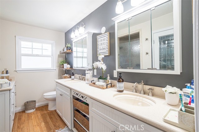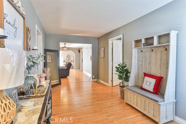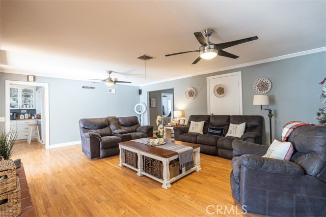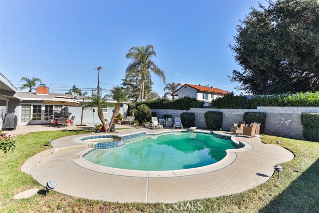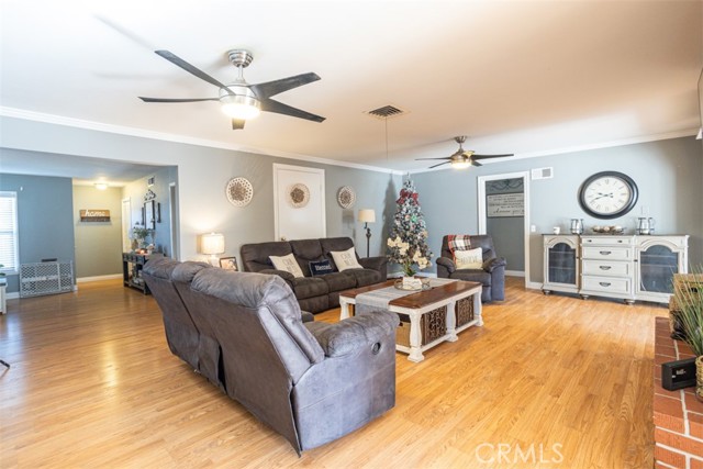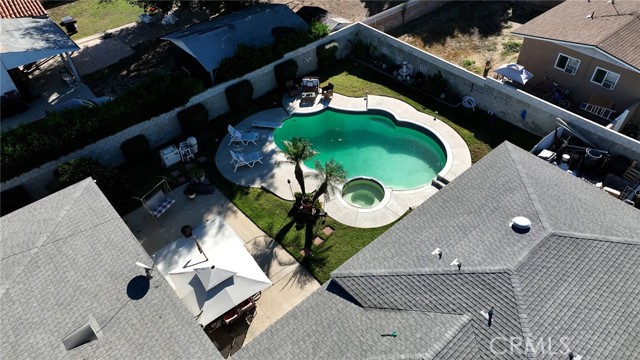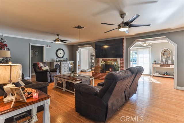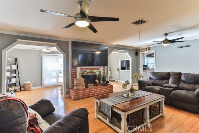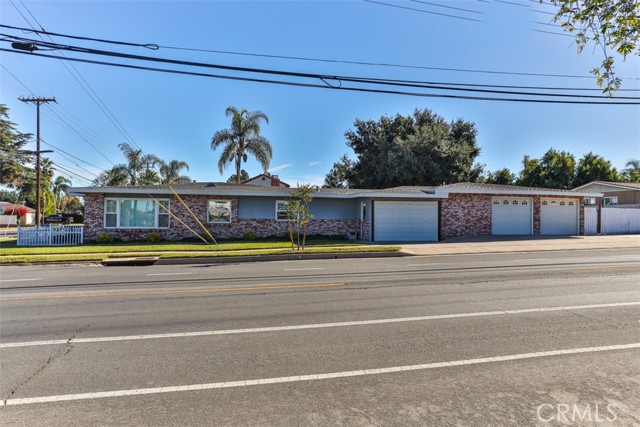Beautiful old town Corona sprawling single story on a large 11,326 square foot corner lot! This home is 2167 Square Feet with 4 bedrooms, and 3 bathrooms all with showers! This home has a very spacious floorplan with large rooms and modern features. Great curb appeal with a lush green lawn & custom brick siding. Extensive laminate wood flooring from the the entry throughout most of the home which leads you into a huge family/great room area with a gas fireplace! Step saving kitchen with window looking through to the family room area. Behind the family room there's a sun room/breakfast room that extends across the back of the house, and there's also a separate formal dining room! The main bedroom has double built in closets/shelving and the main bath has Quartz Counters with 2 sinks & a tub/shower combo. There's 3 additional bedrooms including one double size bedroom (or bonus room) with space for a large closet. The second bathroom has been remodeled with quartz counters, 2 sinks, updated cabinets, and a shower. The breezeway between the house and the 2 Car garage has been closed in with access from the main house that turns this into a 3rd car garage! The garage also has it's own full bathroom with a shower too & an extra large laundry area! Outside is your own private Oasis with a built in & heated pool & spa with plenty of patio/decking around it. There's are also large side yards on both ends of the house with potential for RV parking on one side or it could be used for storage, dog run, etc...Great location centrally located in Corona with low taxes (no mello roos) and no HOA fees!