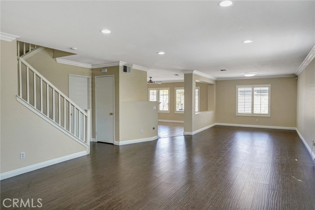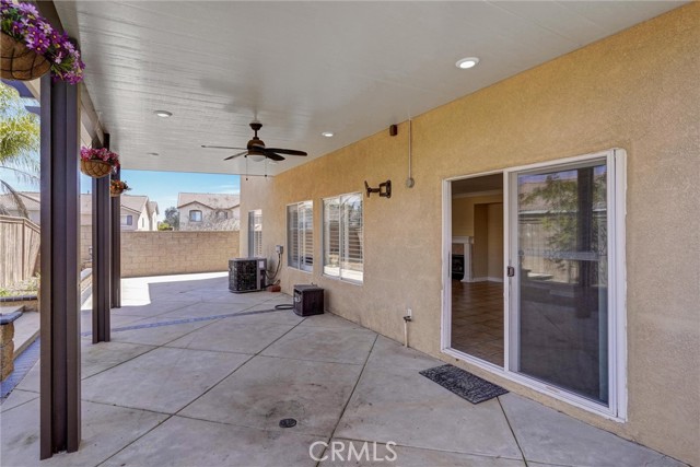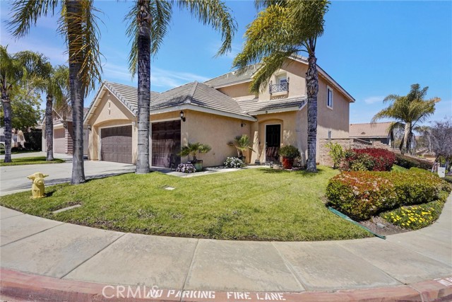 Lovely, Turn-Key 4 BR/ 2.5 BA Home in a quiet neighborhood. This Corner Lot Property has a 3-Car Garage, and is nicely upgraded with Granite Counters in the Kitchen and Bathrooms, and Tile and Laminate Flooring throughout. The first floor has a grand Living Room and Dining Room, and a spacious Family Room which opens to the eat-in Kitchen. Stainless Steel Appliances, Walnut Cabinets, a large Island and a Pantry. The Laundry Room and Powder Room complete the first floor. Upstairs you will find an ample Primary Suite, with a Walk-in Closet, Dual Sinks, a Soaking Tub, Shower and separate Toilet area. There are three additional Bedrooms. All Bedrooms have Ceiling Fans and Plantation Shutters, Nice-sized Closets and beautiful Flooring. No carpeting anywhere! The Backyard has Stamped Concrete and a Patio Cover with a Ceiling Fan. A nicely landscaped Brick Planter with a Fountain, as well. The 3-car Garage offers lots of Parking and Storage Space. This immaculate Home is ready for you to move right in!