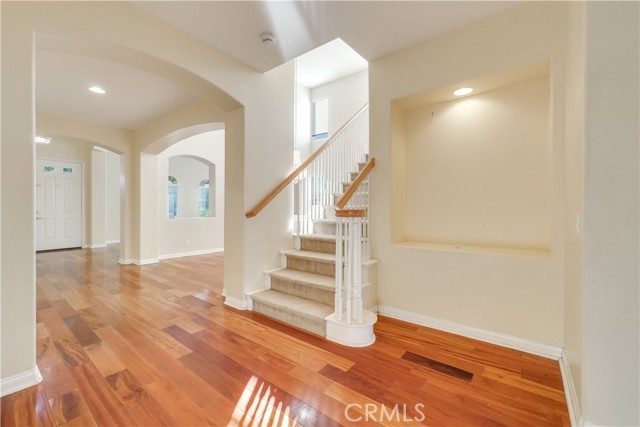 NEW PAINT! AND NEW PRICE! Sellers have called a professional painter this week. - Spacious 4beds, 4baths 4075 sq ft POOL Home with BONUS ROOM located in Montecito Ranch community of Corona, CA within the Corona-Norco School District. The home features 3 Car Tandem Garage, hardwood floors throughout the main living areas, High ceilings, abundance of natural light, and a whole-house fan. The Living Room and Dining Area has a two-way fireplace and the Separate Family Room provides additional space for relaxation and a cozy fireplace too! This home offers a MAIN FLOOR bedroom and a Full Downstairs Bathroom for convenience. The Kitchen features a Double Oven, Cooktop, Microwave, walk-in pantry, bartop, butler pantry counter, TONS of cabinetry, a long buffet bar, and a breakfast nook area. The double sliding glass door leads to the relaxing backyard with a Relaxing SPA, Refreshing POOL, soothing waterfall, and a BBQ island/bar. Another highlight is the primary bedroom that offers a LARGE Retreat area, full bathroom with jetted tub, separate shower and toilet, double sink vanity, and a double door walk-in closet. Secondary bedrooms include one with a full bath and walk-in closet. An enclosed bonus room offers versatility, that could serve as a fitness or entertainment room. The laundry room is equipped with a sink and ample storage. Plus, a landing space upstairs that provides a perfect area for a home office or tech space. This home sits on a great location! Close proximity to Dos Lagos, Glen Ivy Hot Springs, Golf Course, parks, shopping center with easy access to the freeway and low HOA fees.